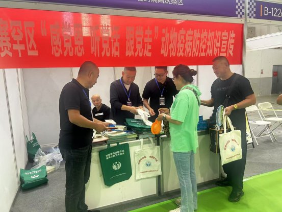 为深入学习贯彻党的二十大精神,扎实推进“感党恩、听党话、跟党走”群众教育实践活动,9月12日,呼和浩特市动物疫病预防控制中心党支部联合赛罕区动物疫病预防控制中心党支部,以“2025中国华北内蒙古宠物产业博览会”契机,在内蒙古国际会展中心共同开展“感党恩、听党话、跟党走”动物疫病防控知识宣传主题党日活动。