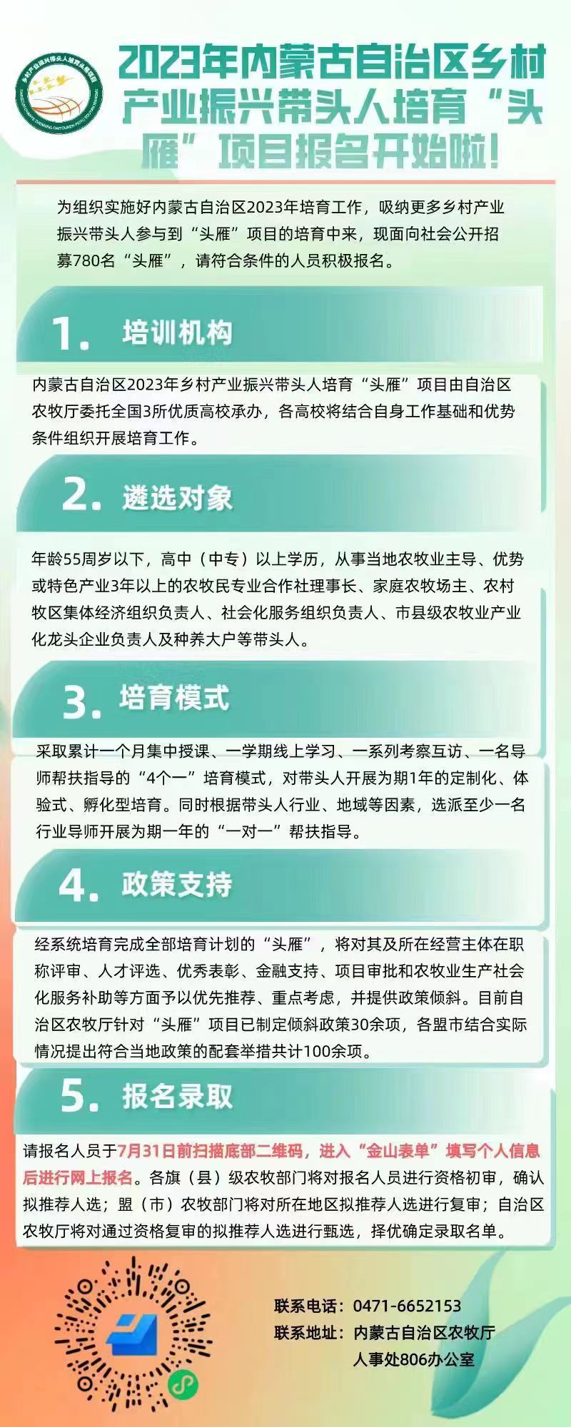 内蒙古自治区乡村产业振兴带头人培育“头雁”项目报名开始啦!