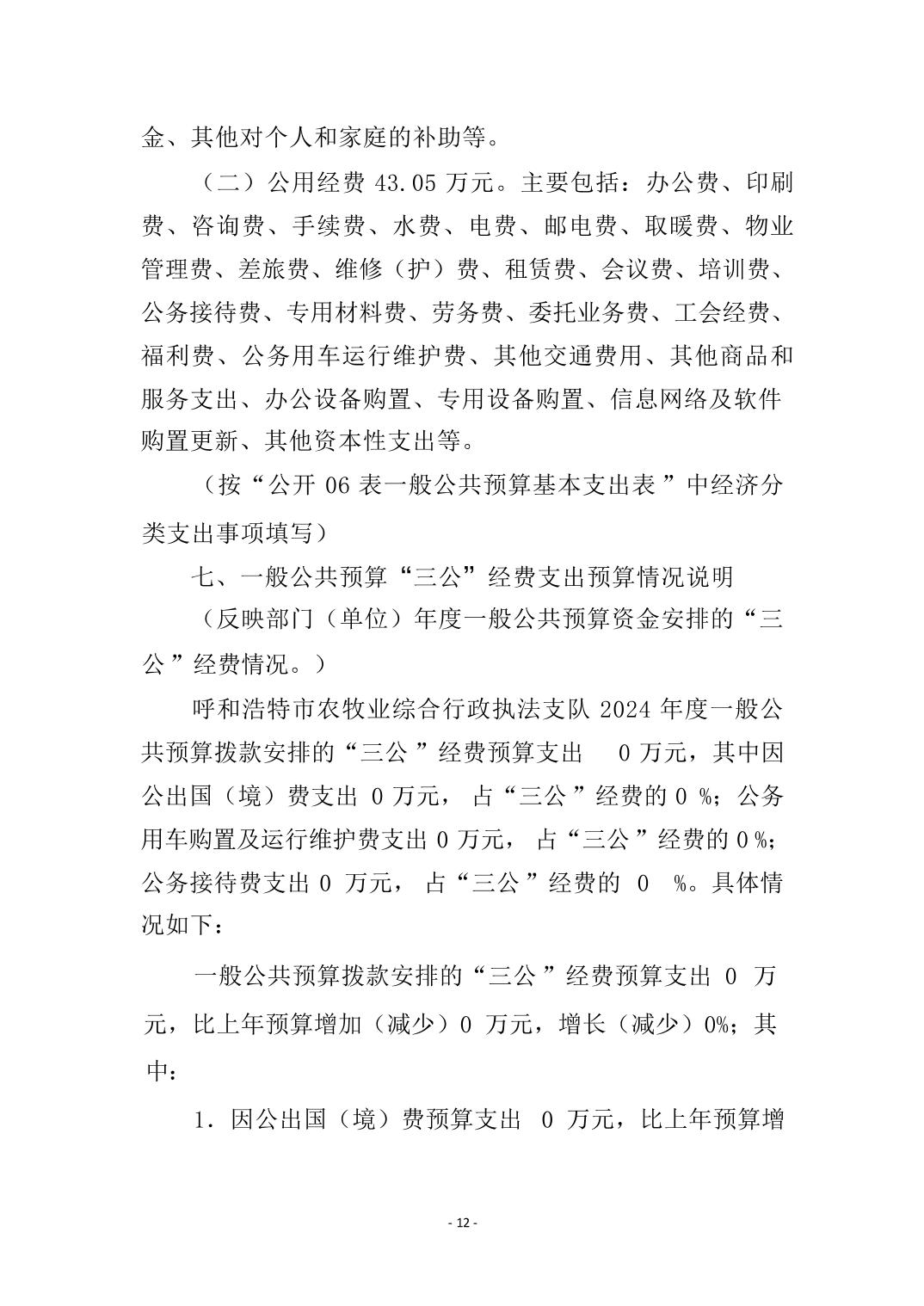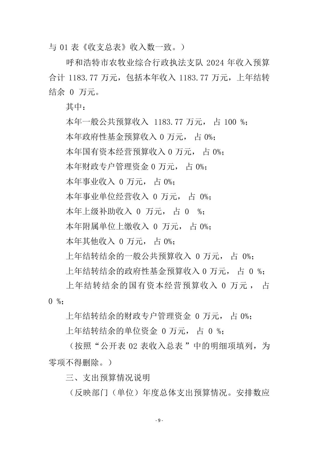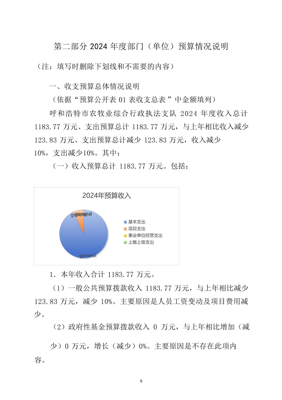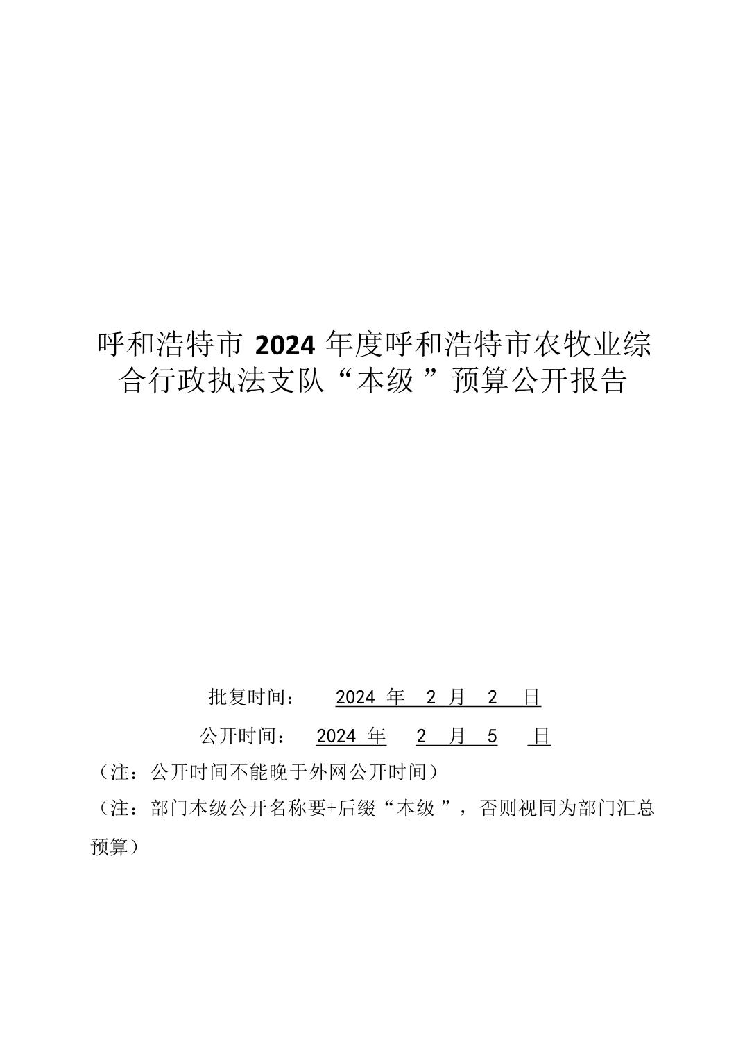 呼和浩特市2024年度呼和浩特市农牧业综合行政执法支队“本级”预算公开报告
