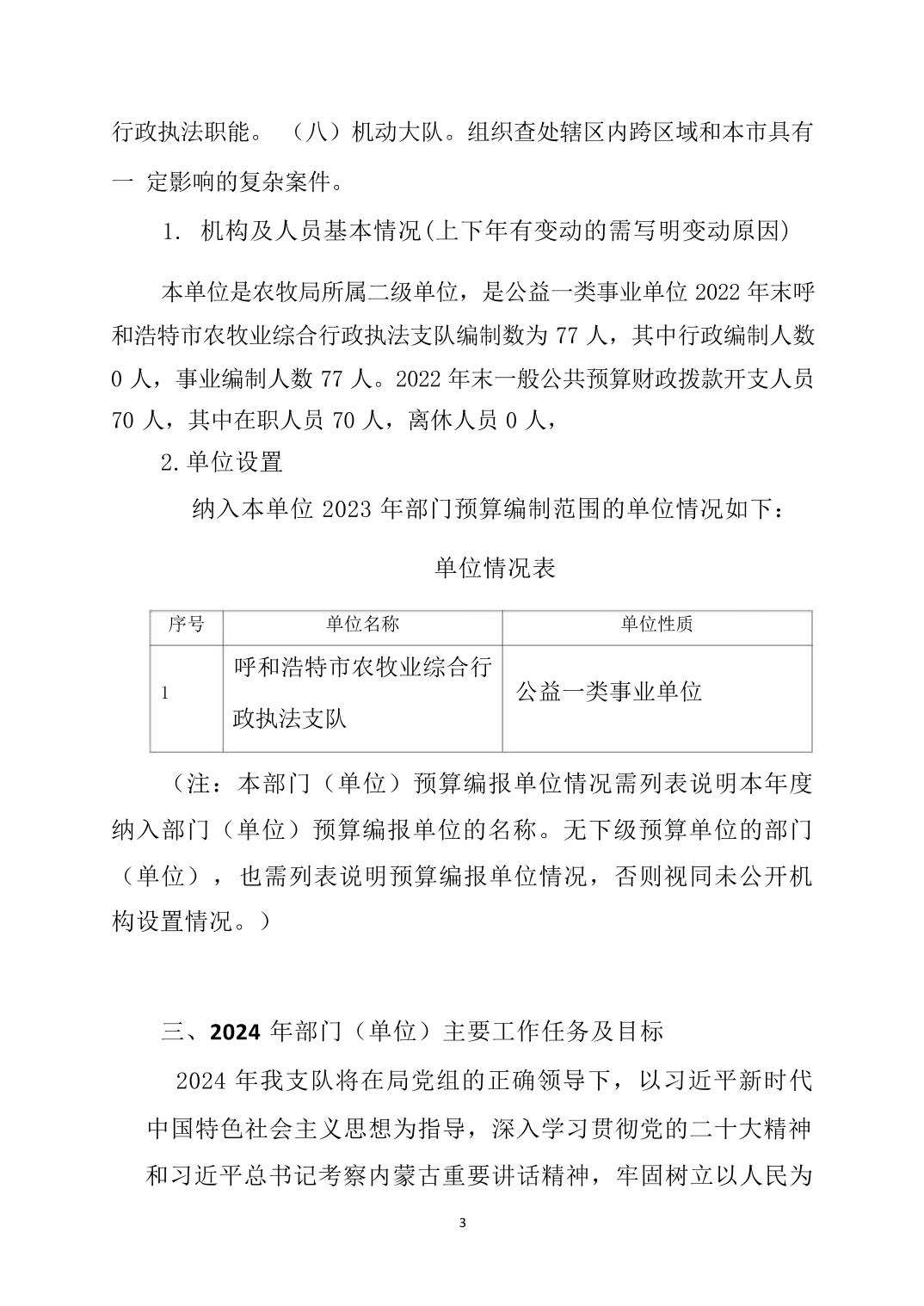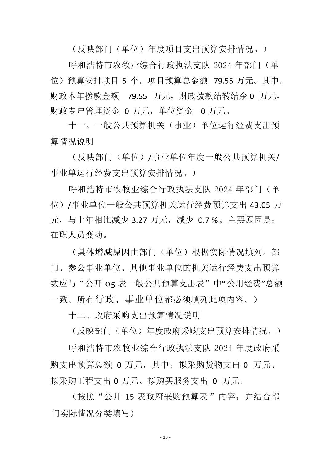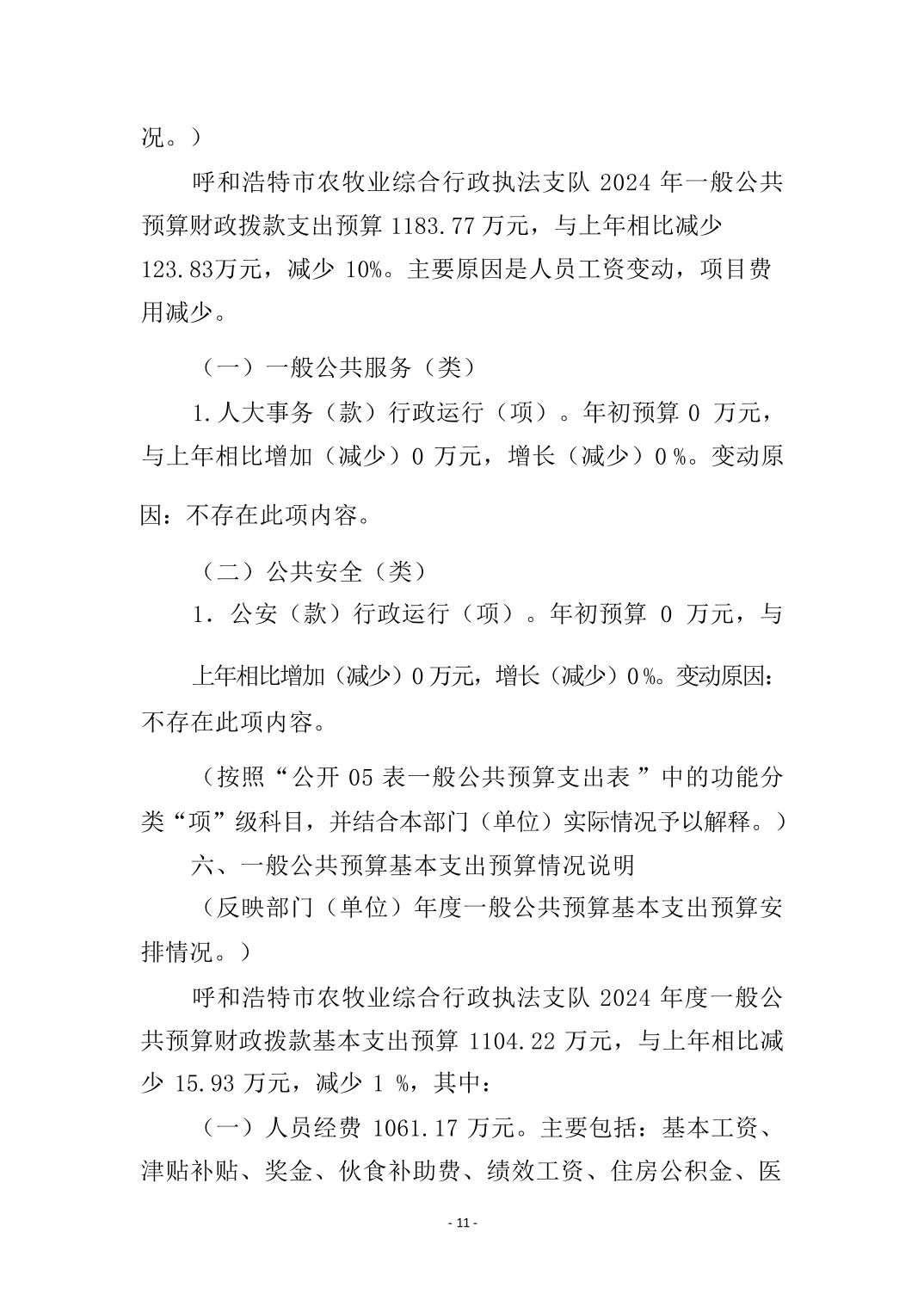 呼和浩特市2024年度呼和浩特市农牧业综合行政执法支队“本级”预算公开报告