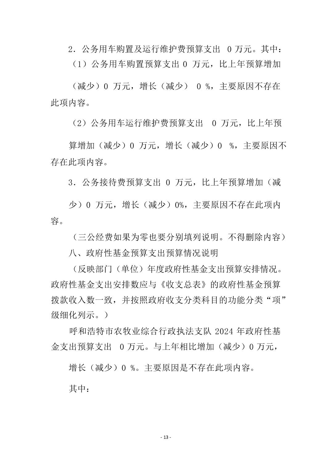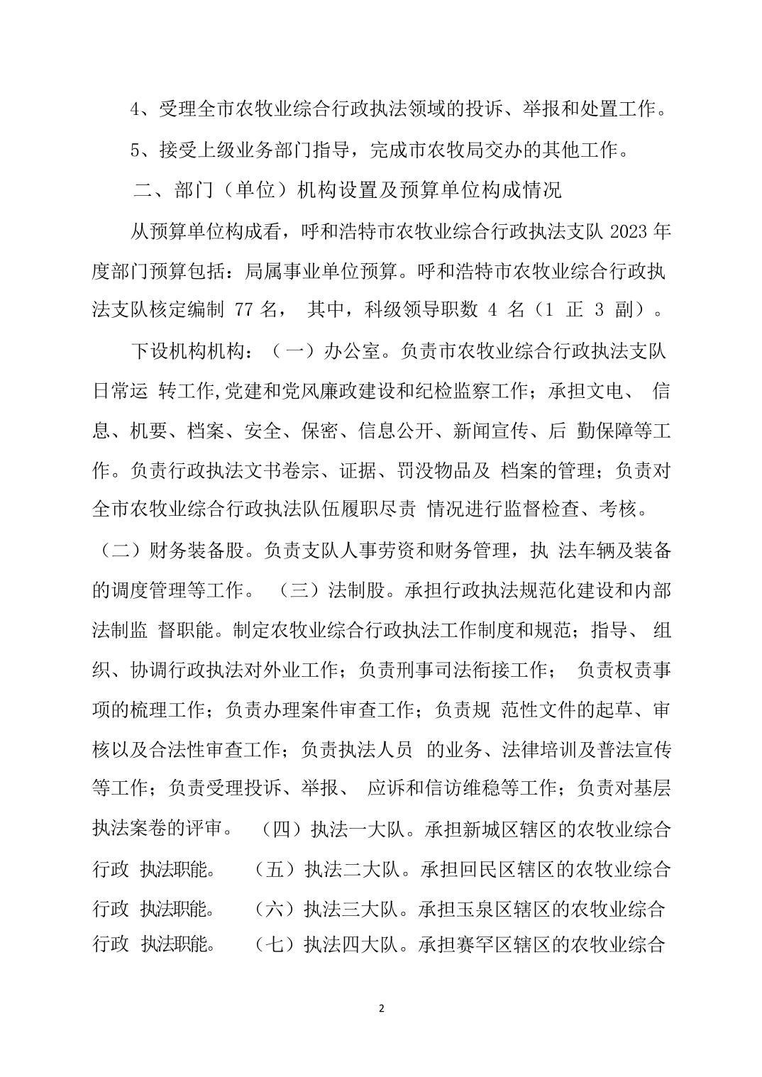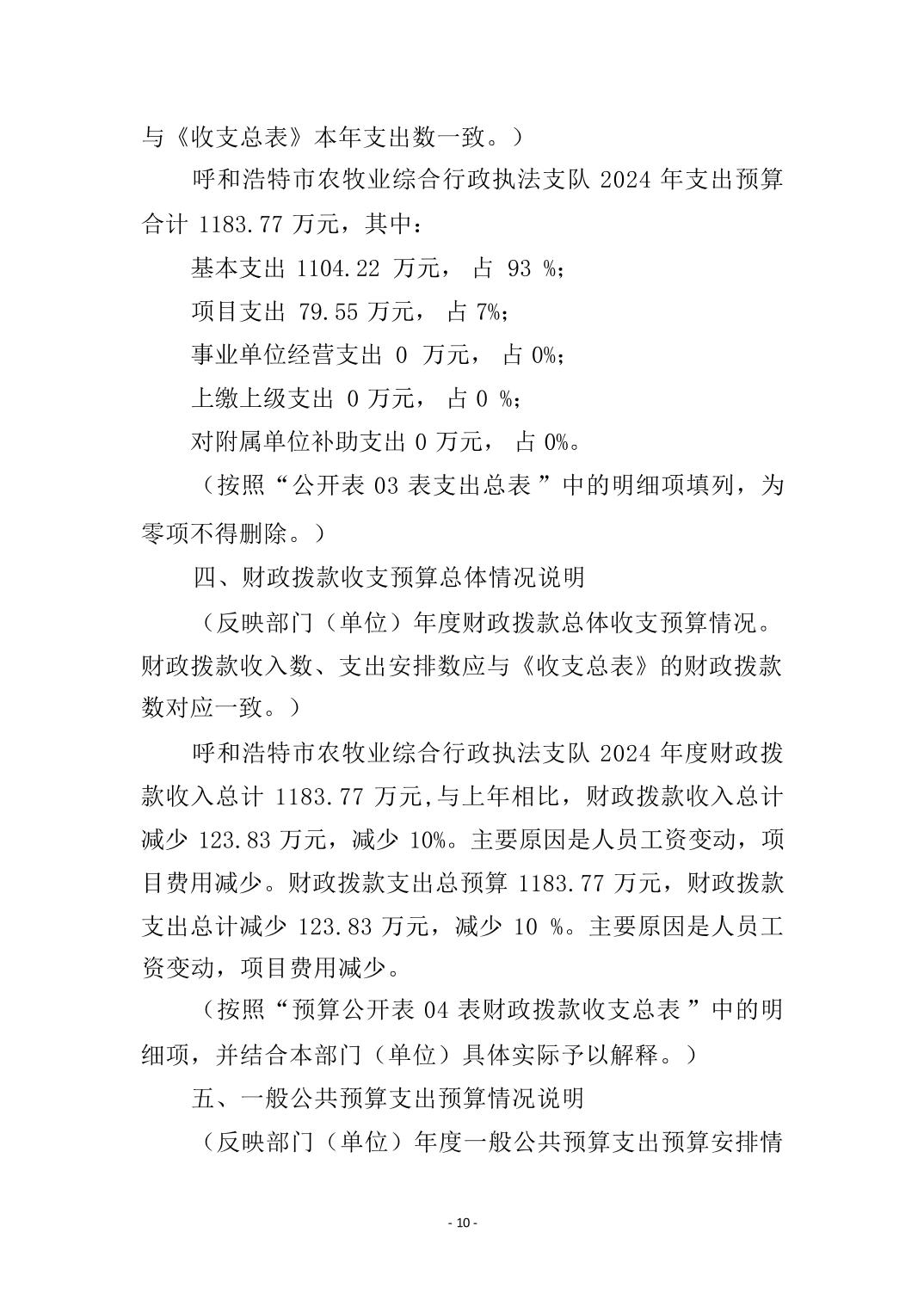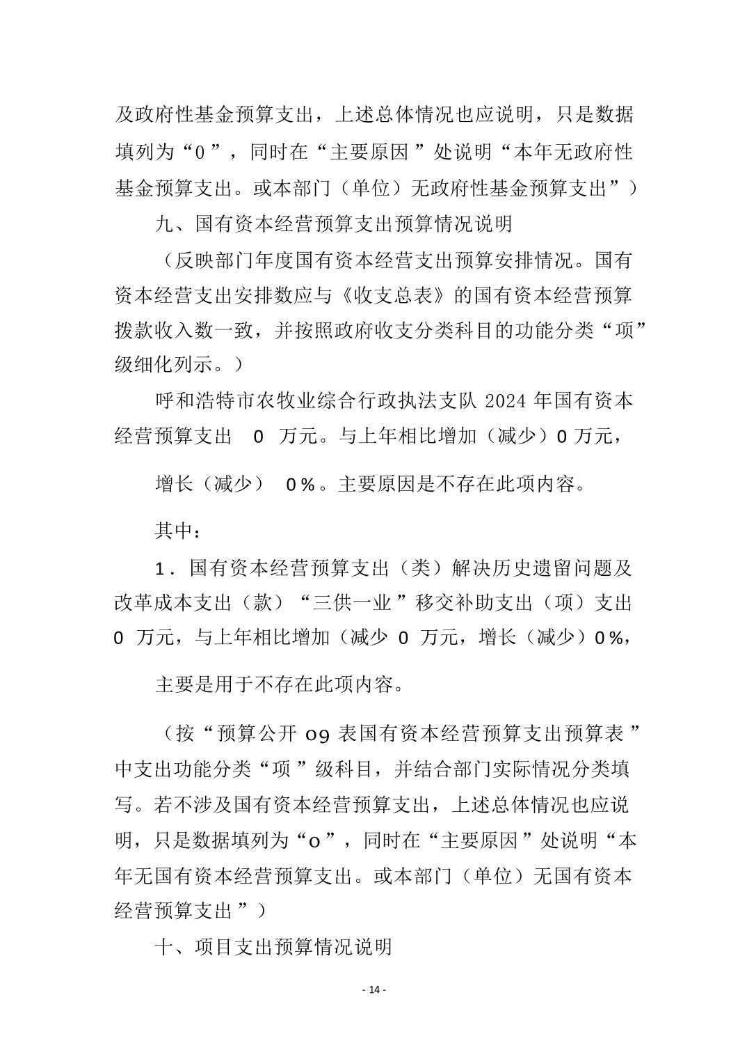 呼和浩特市2024年度呼和浩特市农牧业综合行政执法支队“本级”预算公开报告