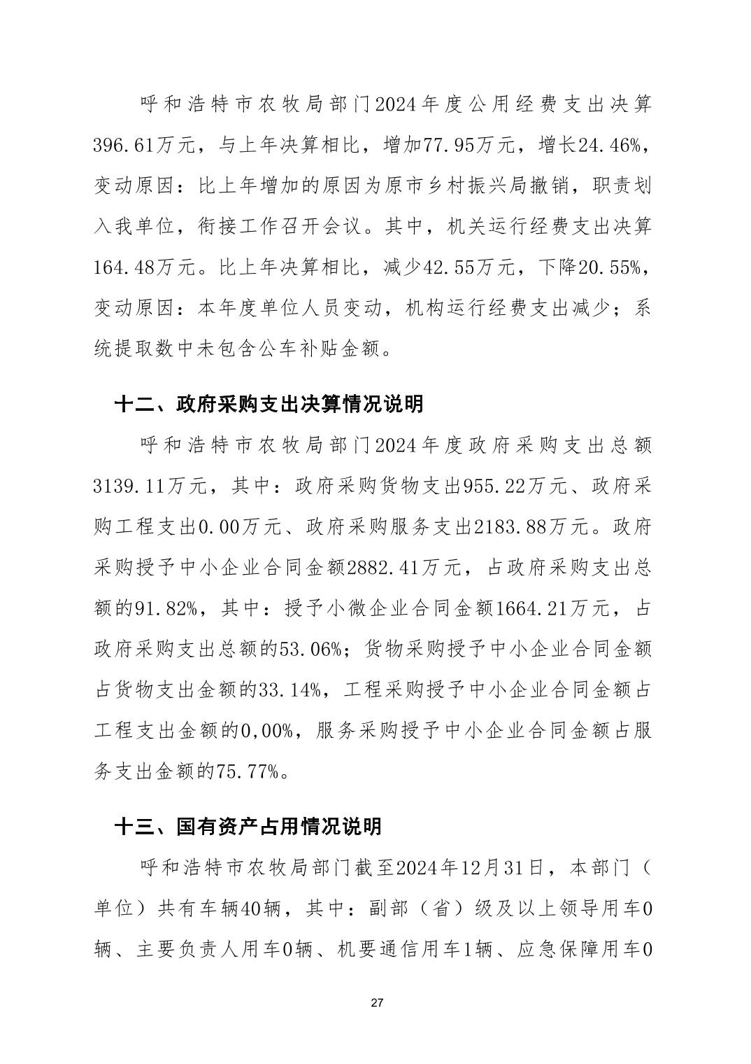 2024年度内蒙古自治区呼和浩特市农牧局(部门)公开报告