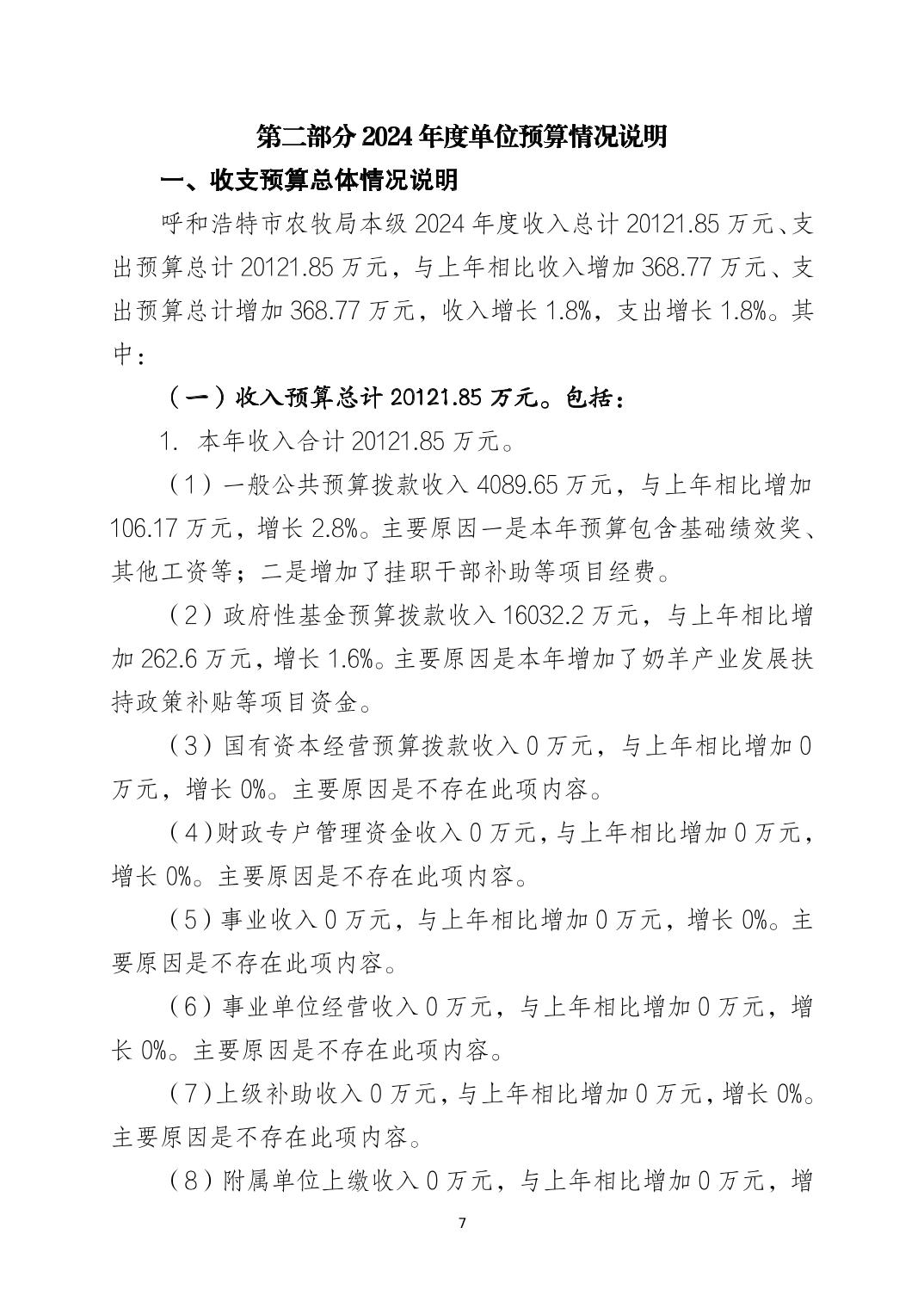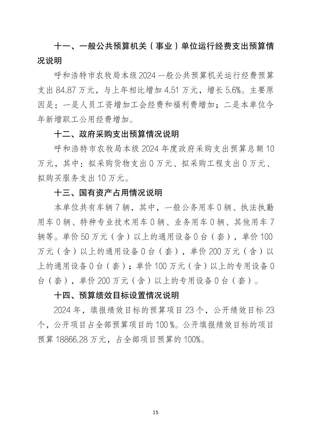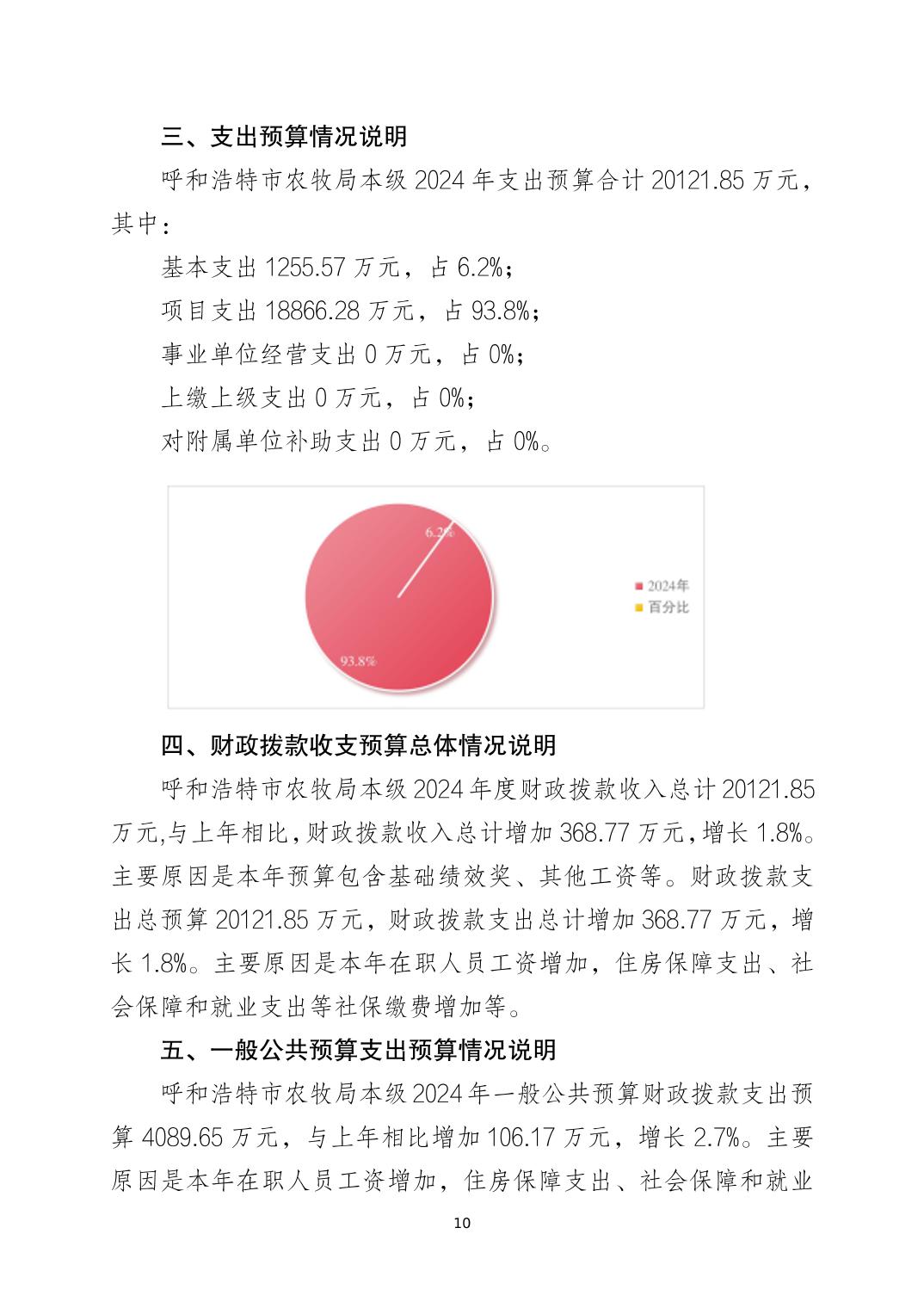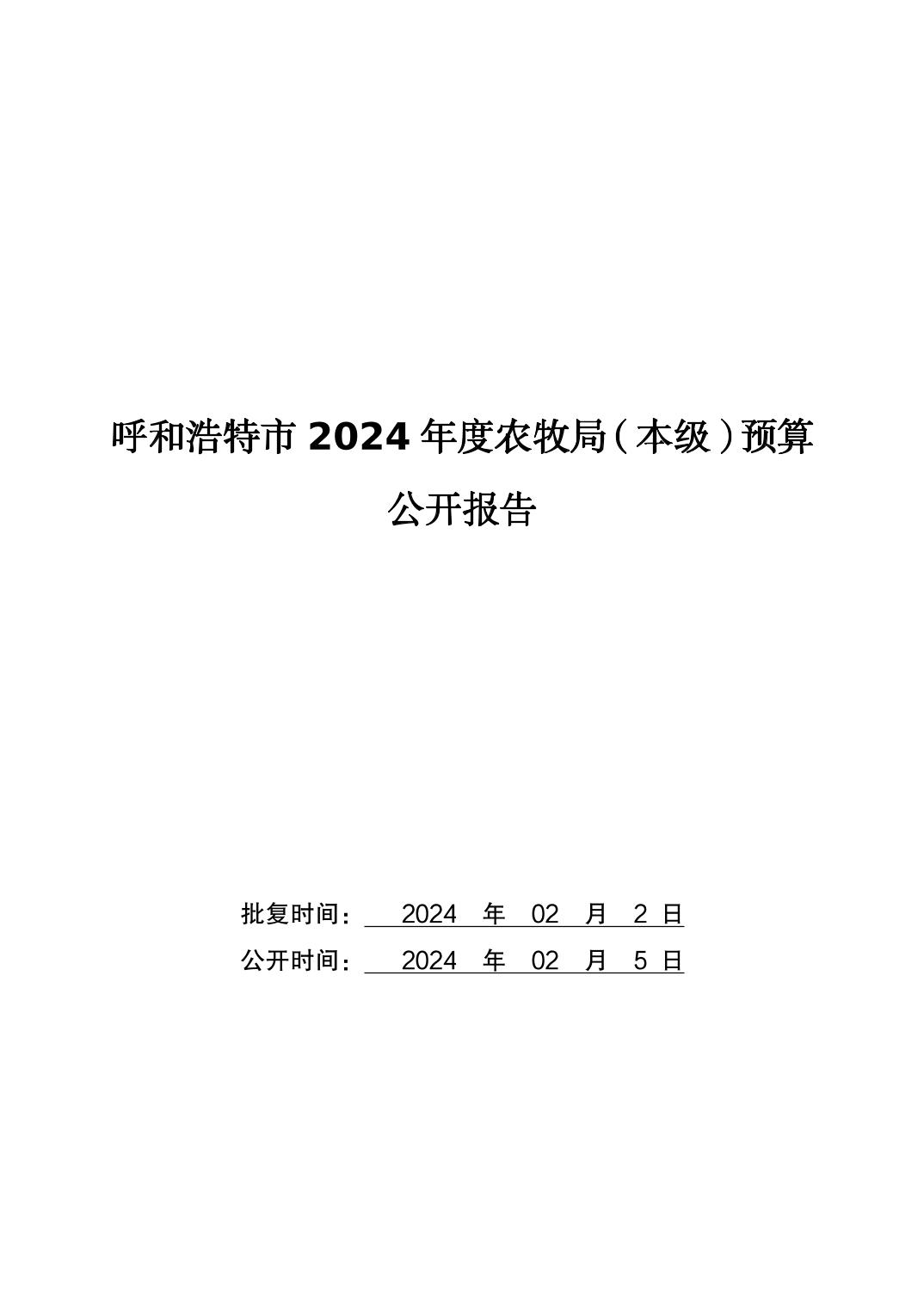呼和浩特市2024年度农牧局(本级)预算公开报告