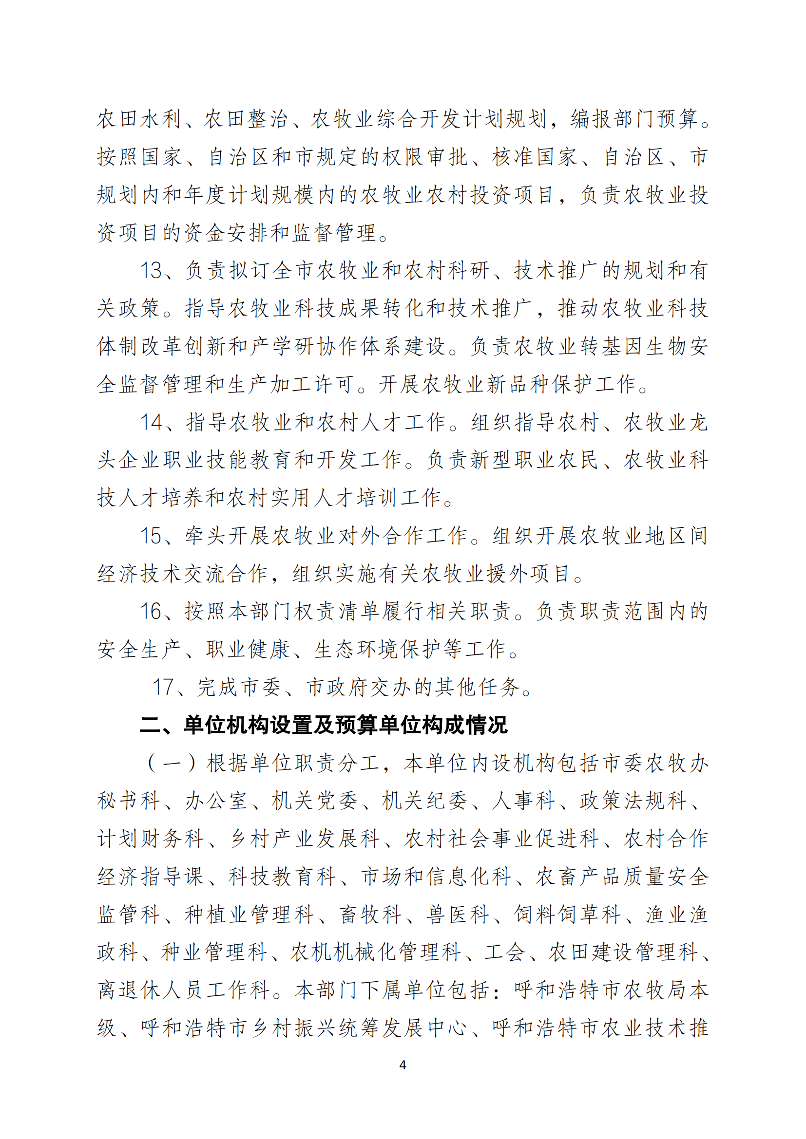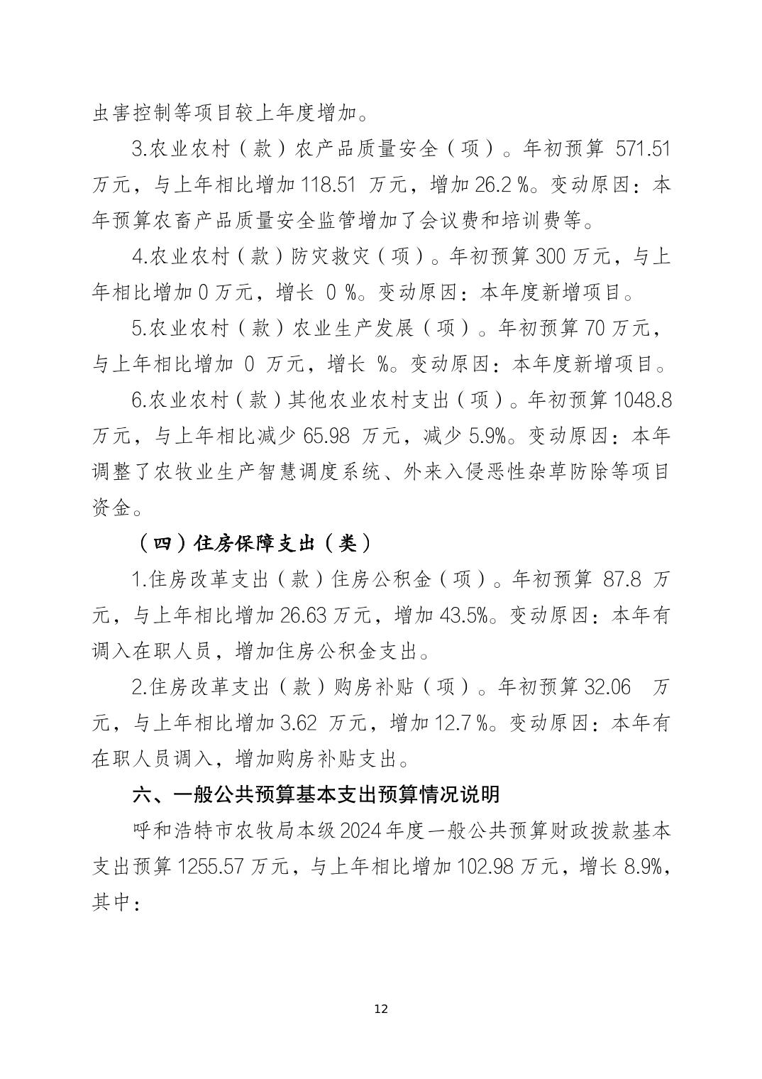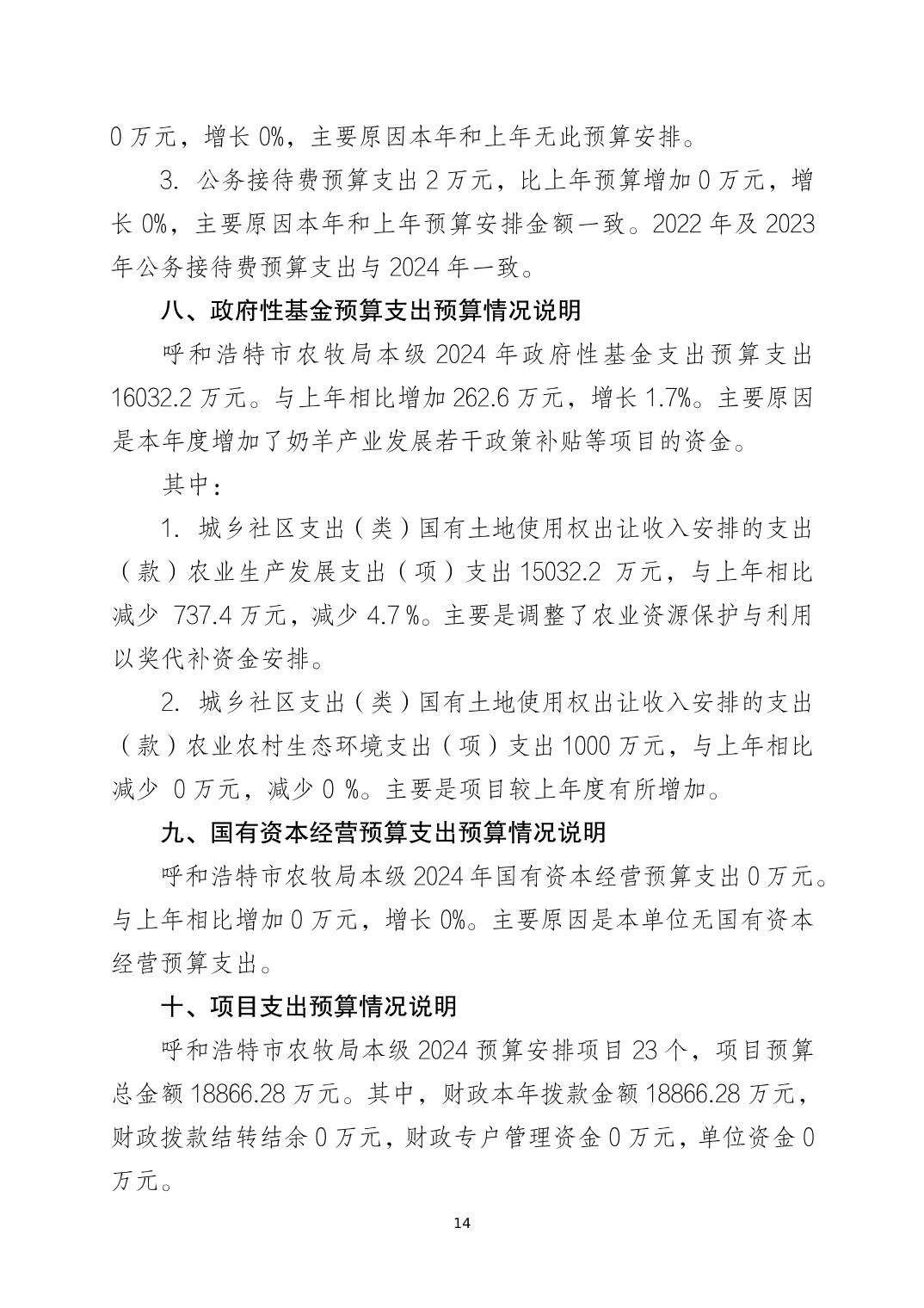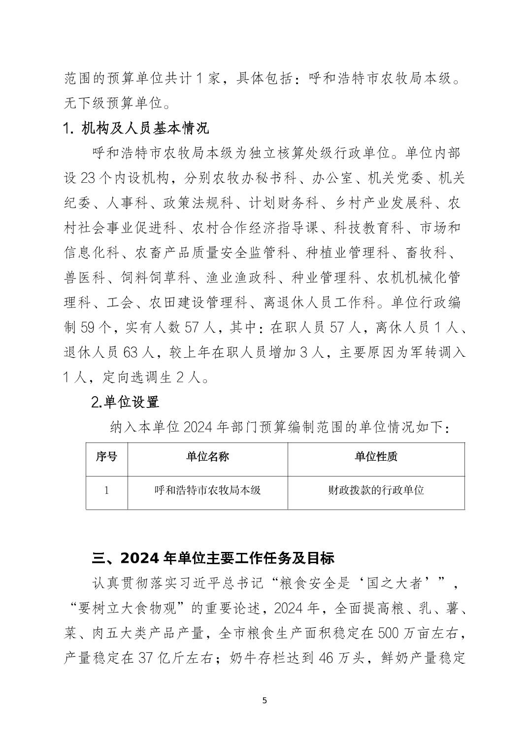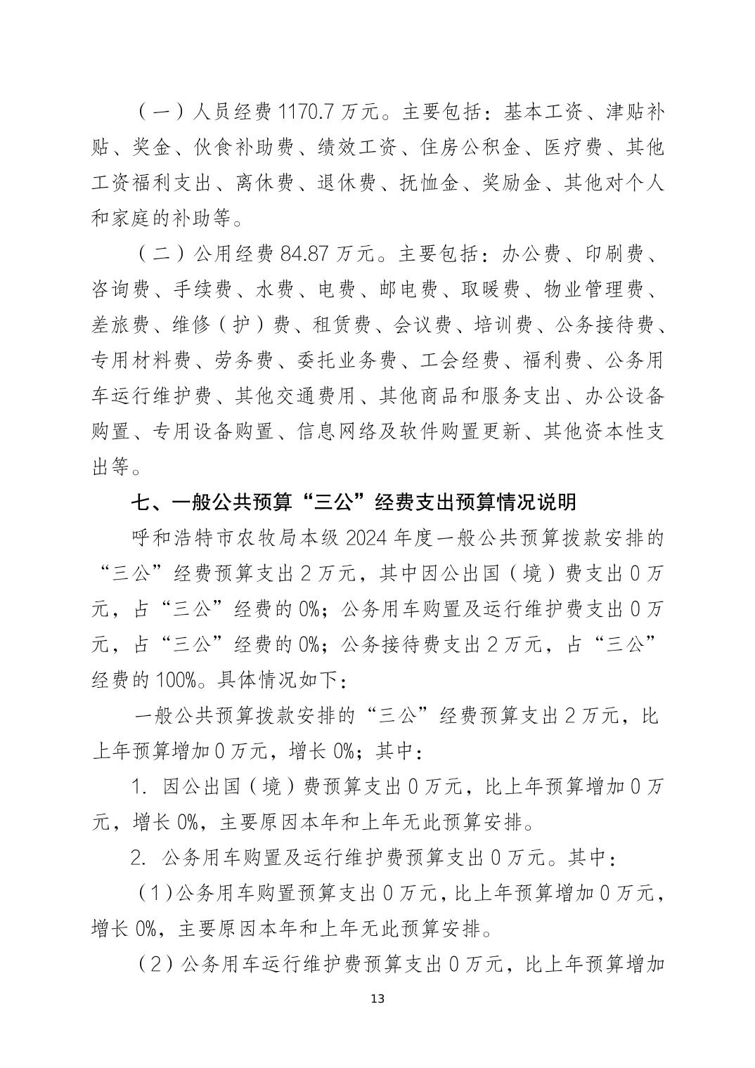 呼和浩特市2024年度农牧局(本级)预算公开报告