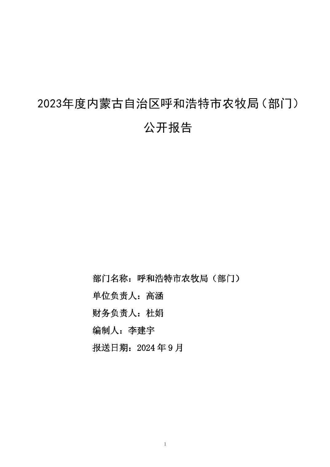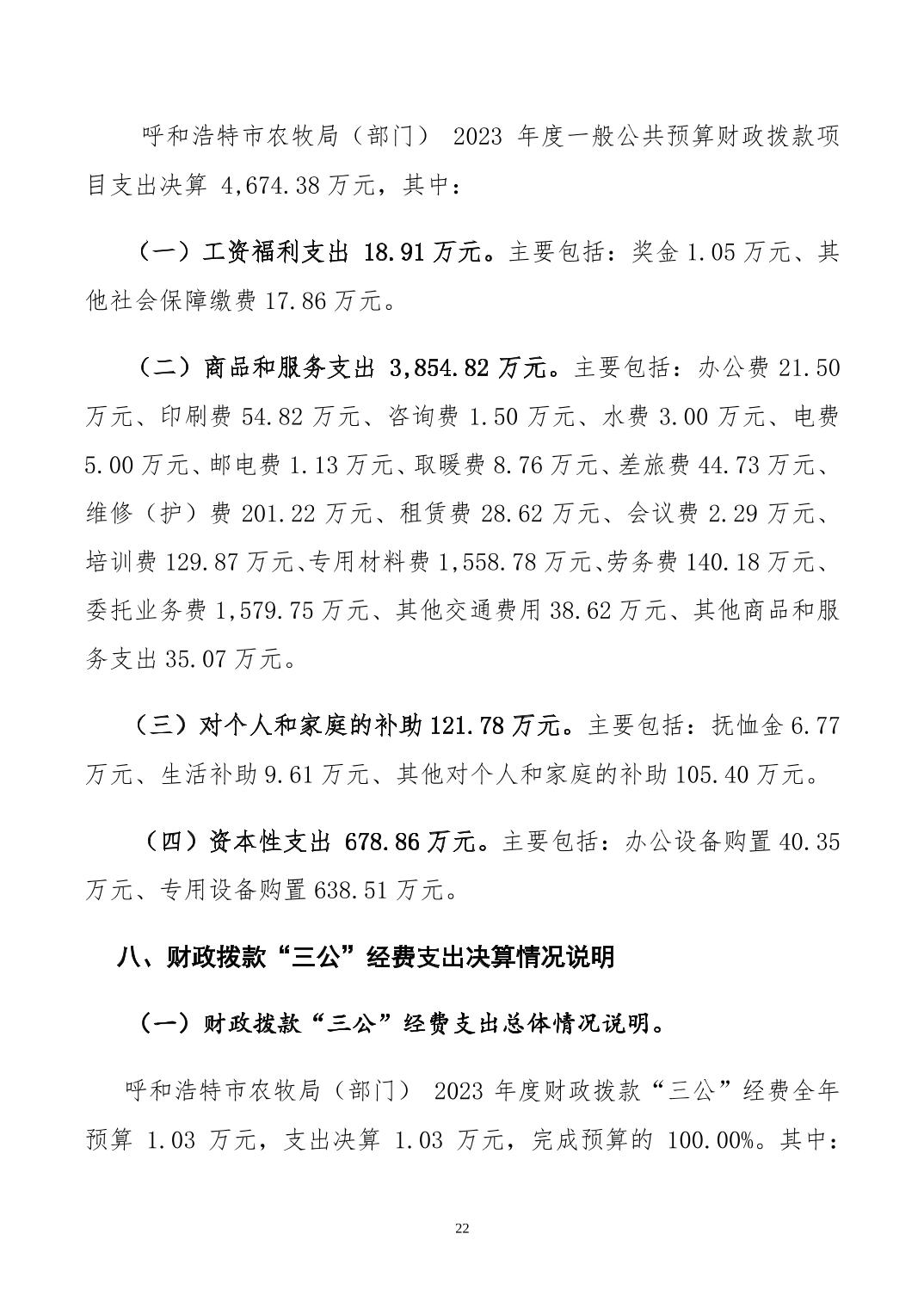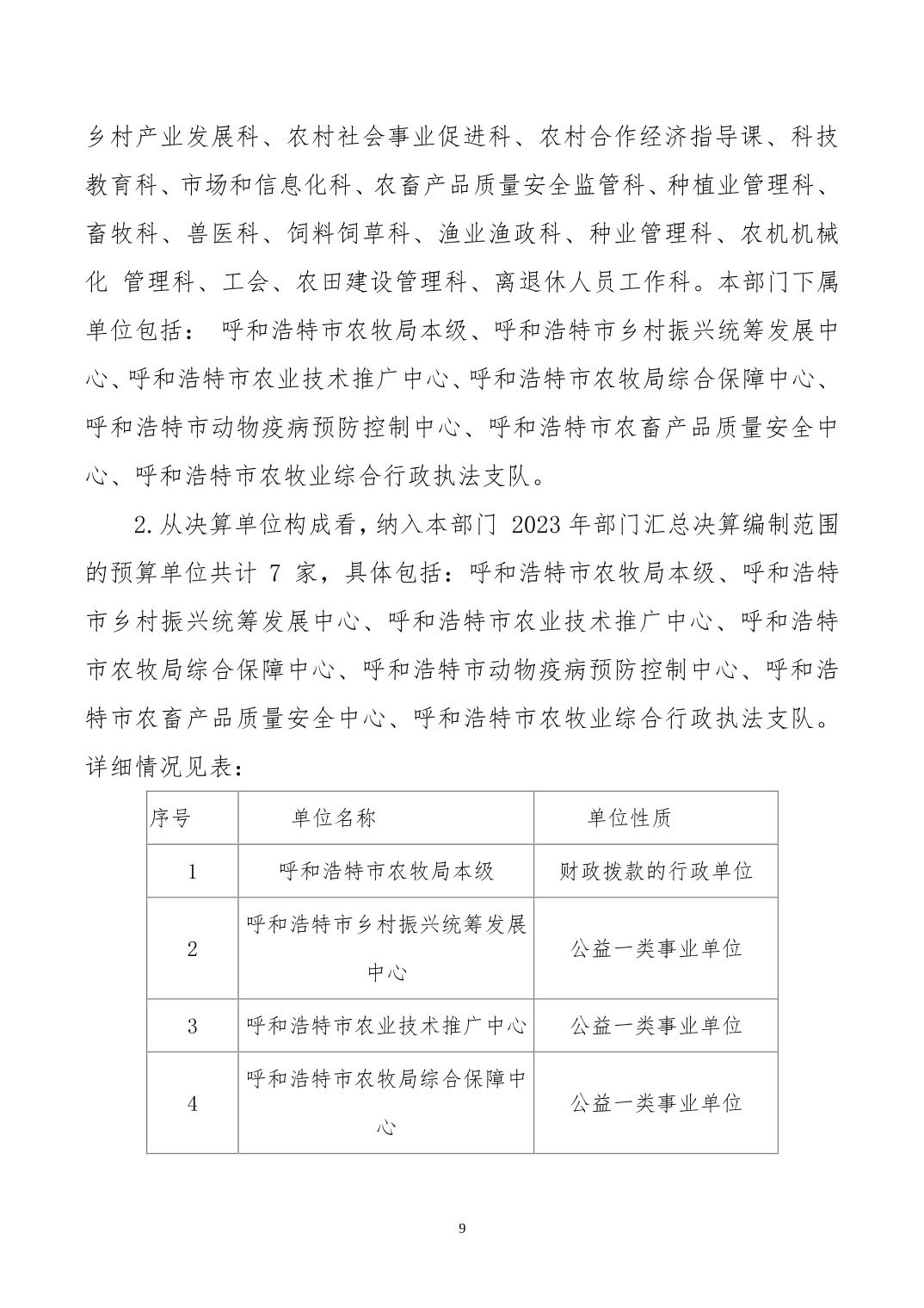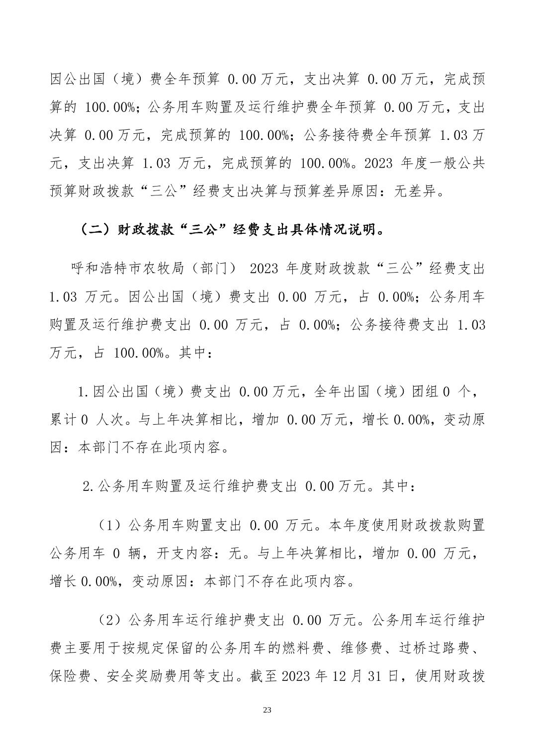 2023年度内蒙古自治区呼和浩特市农牧局(部门)决算 公开