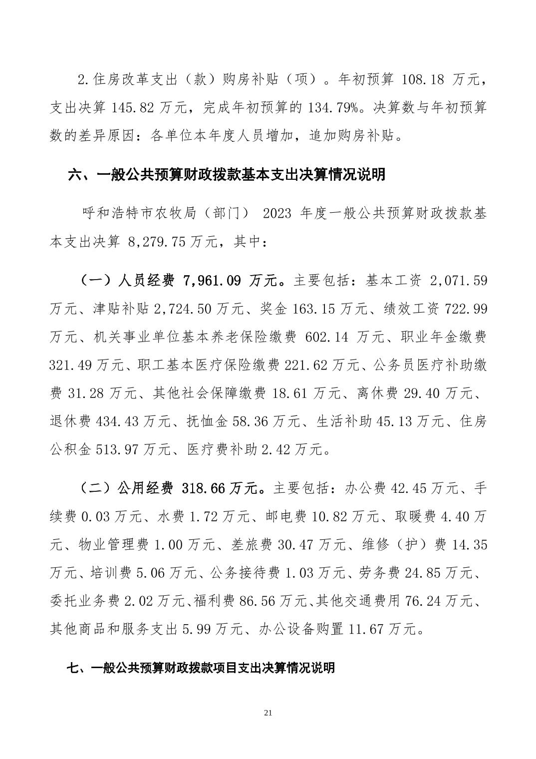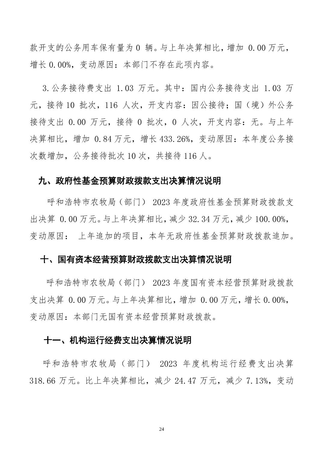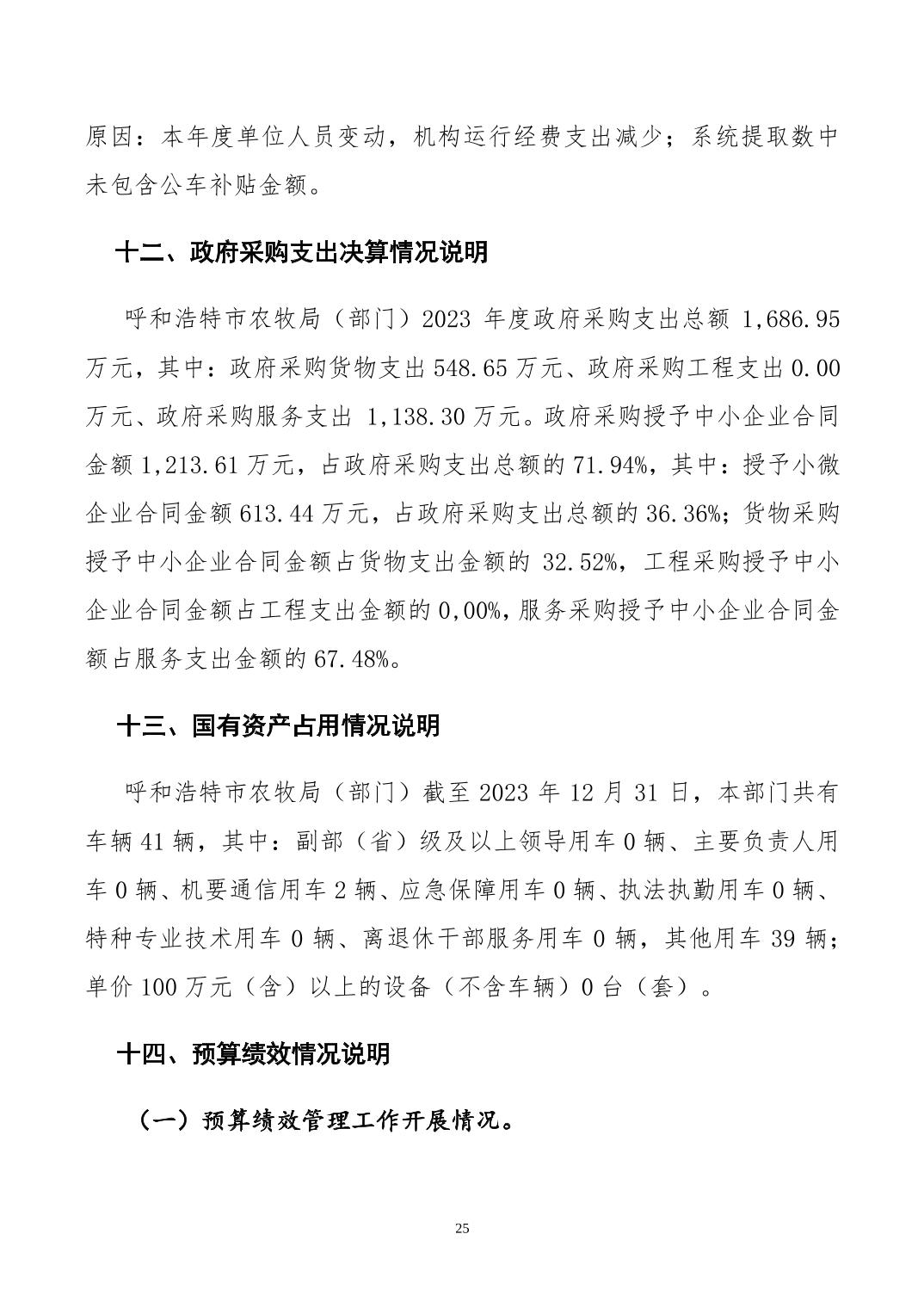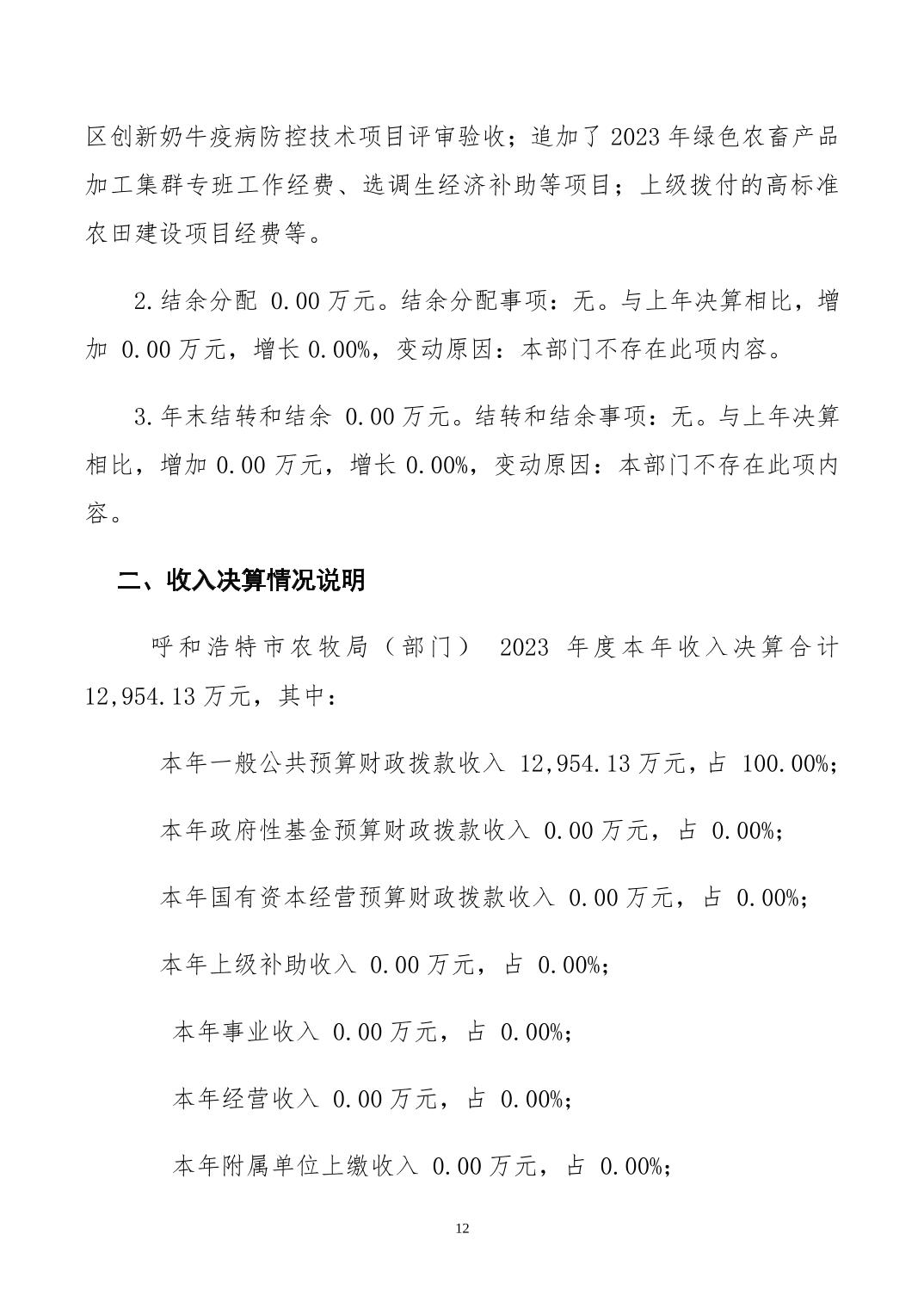 2023年度内蒙古自治区呼和浩特市农牧局(部门)决算 公开