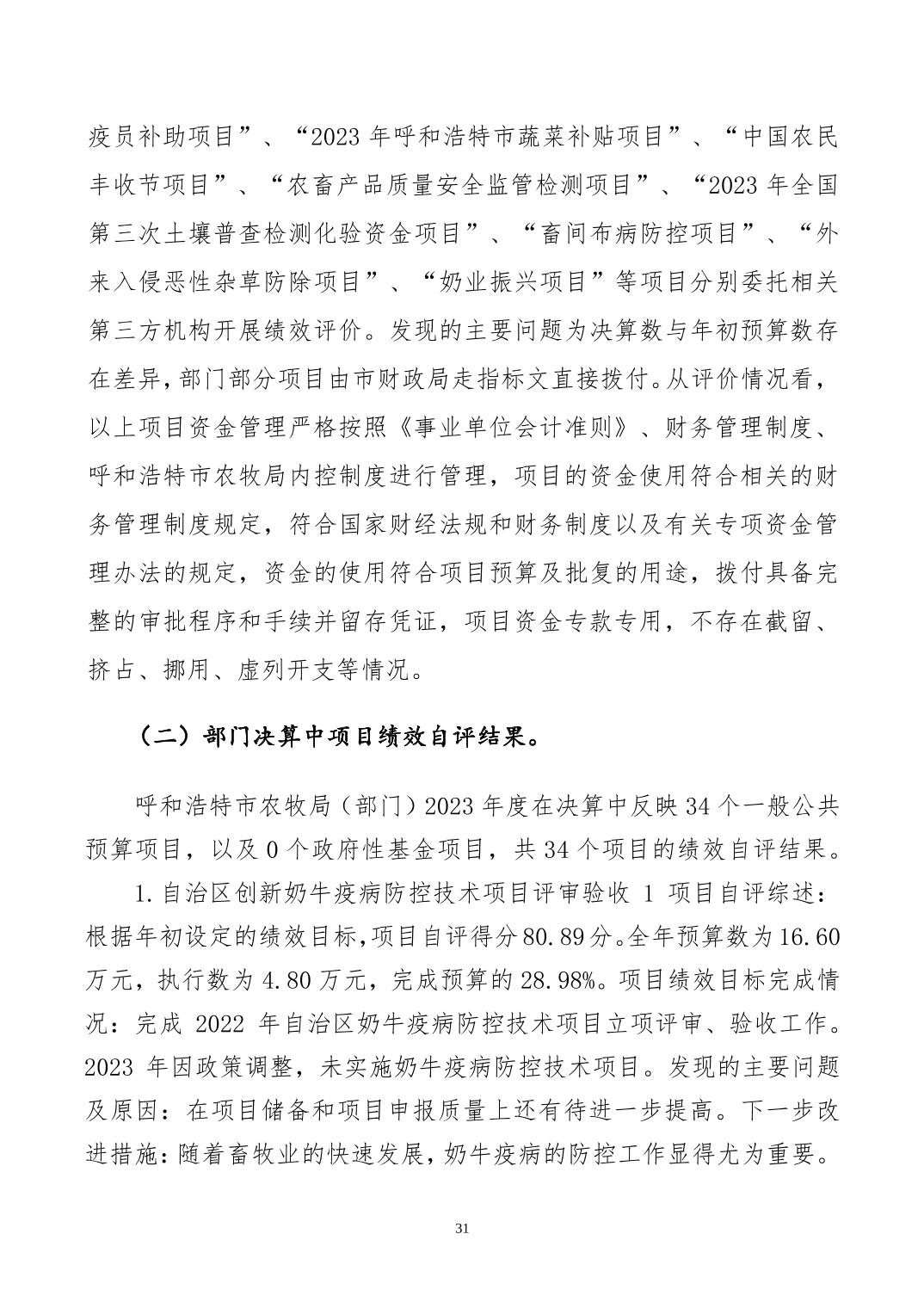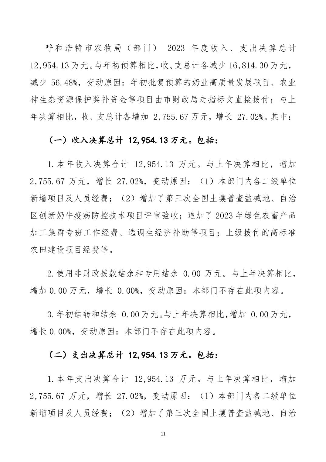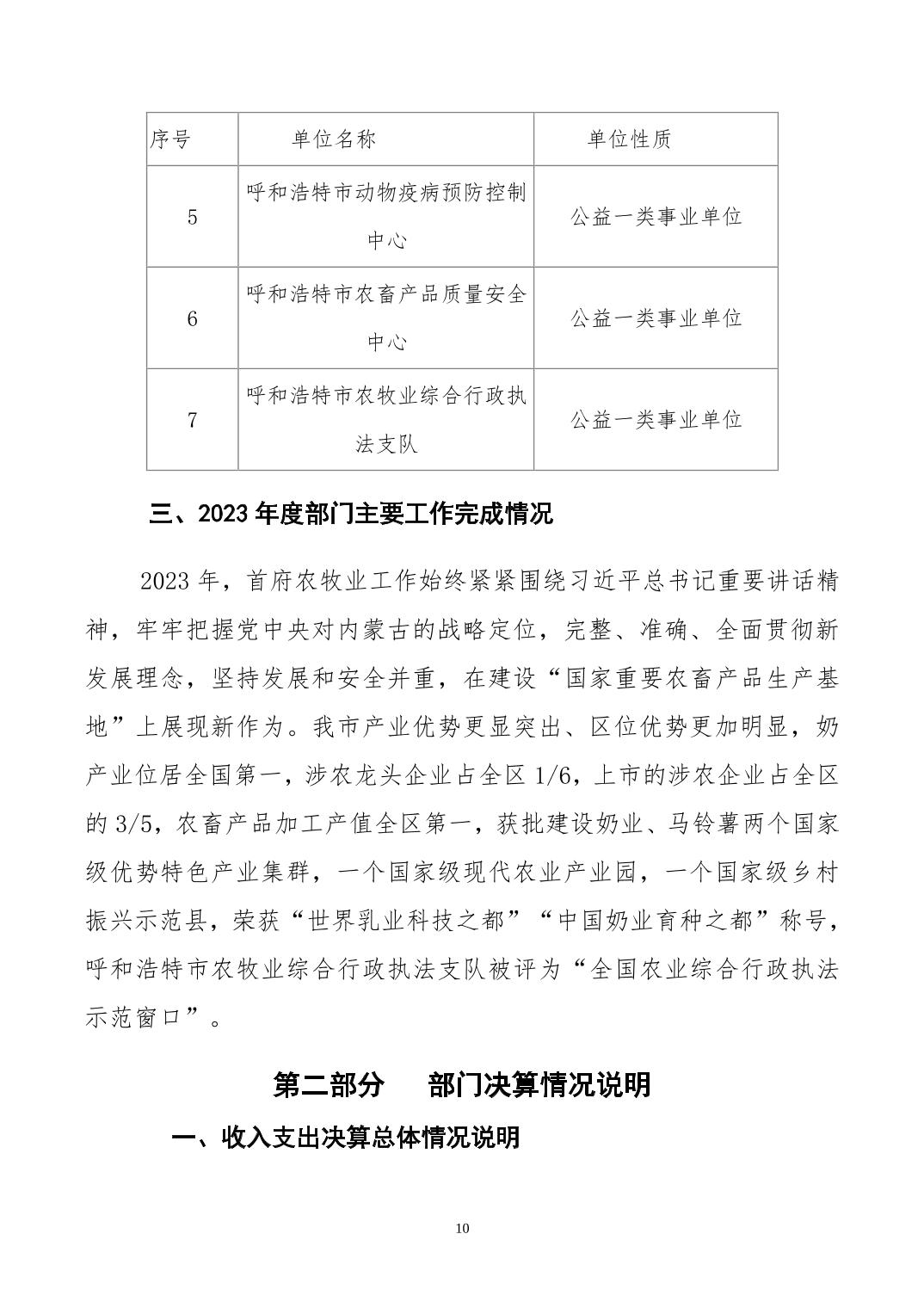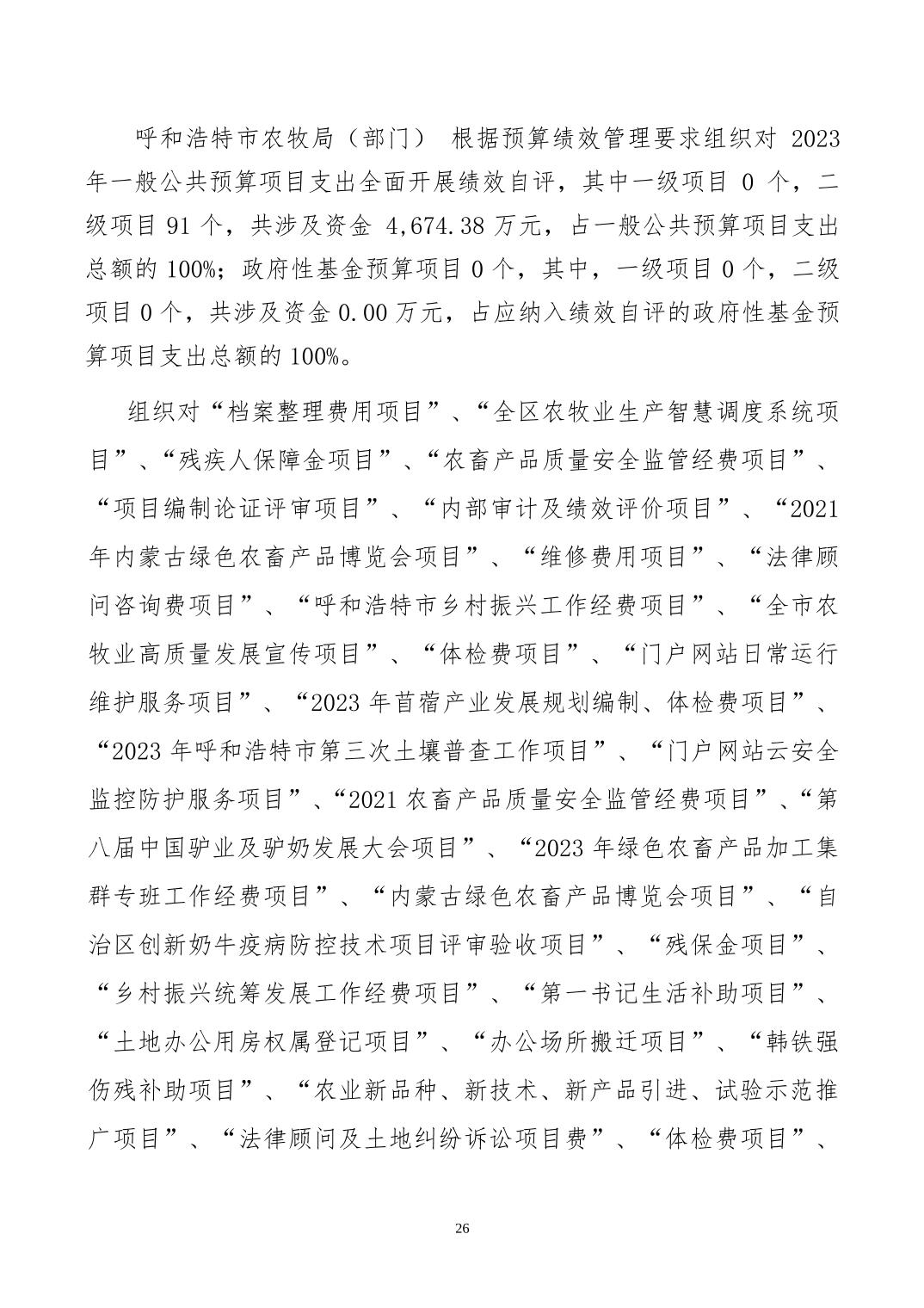 2023年度内蒙古自治区呼和浩特市农牧局(部门)决算 公开