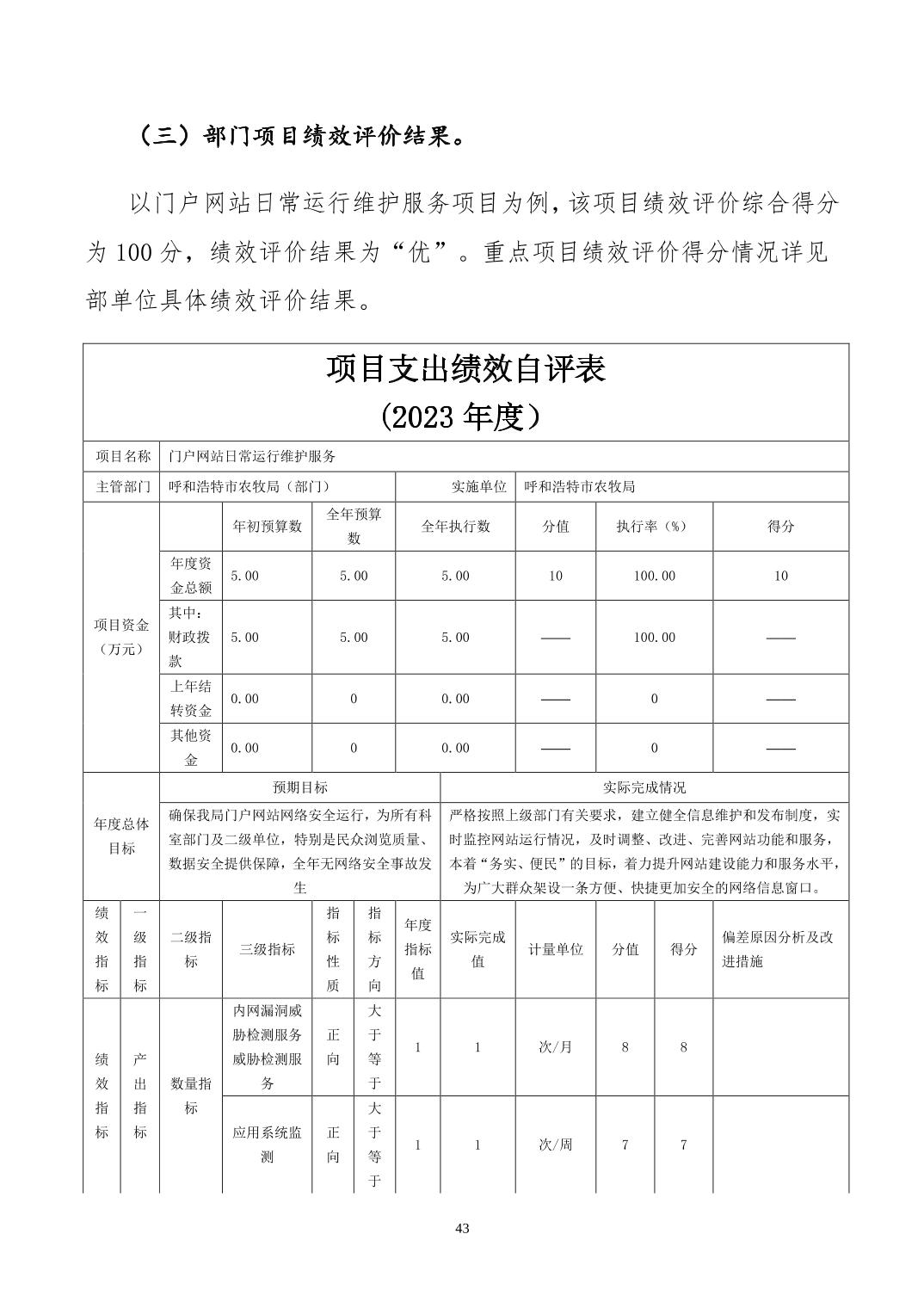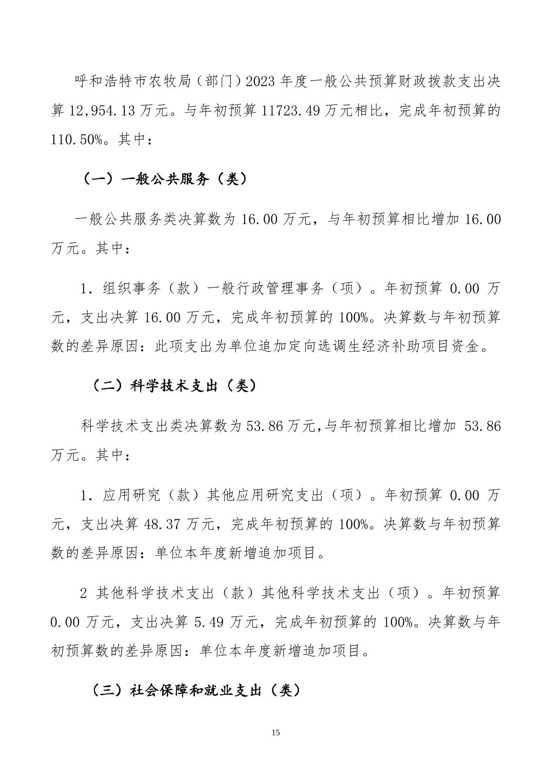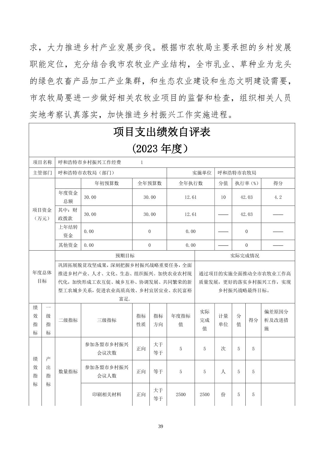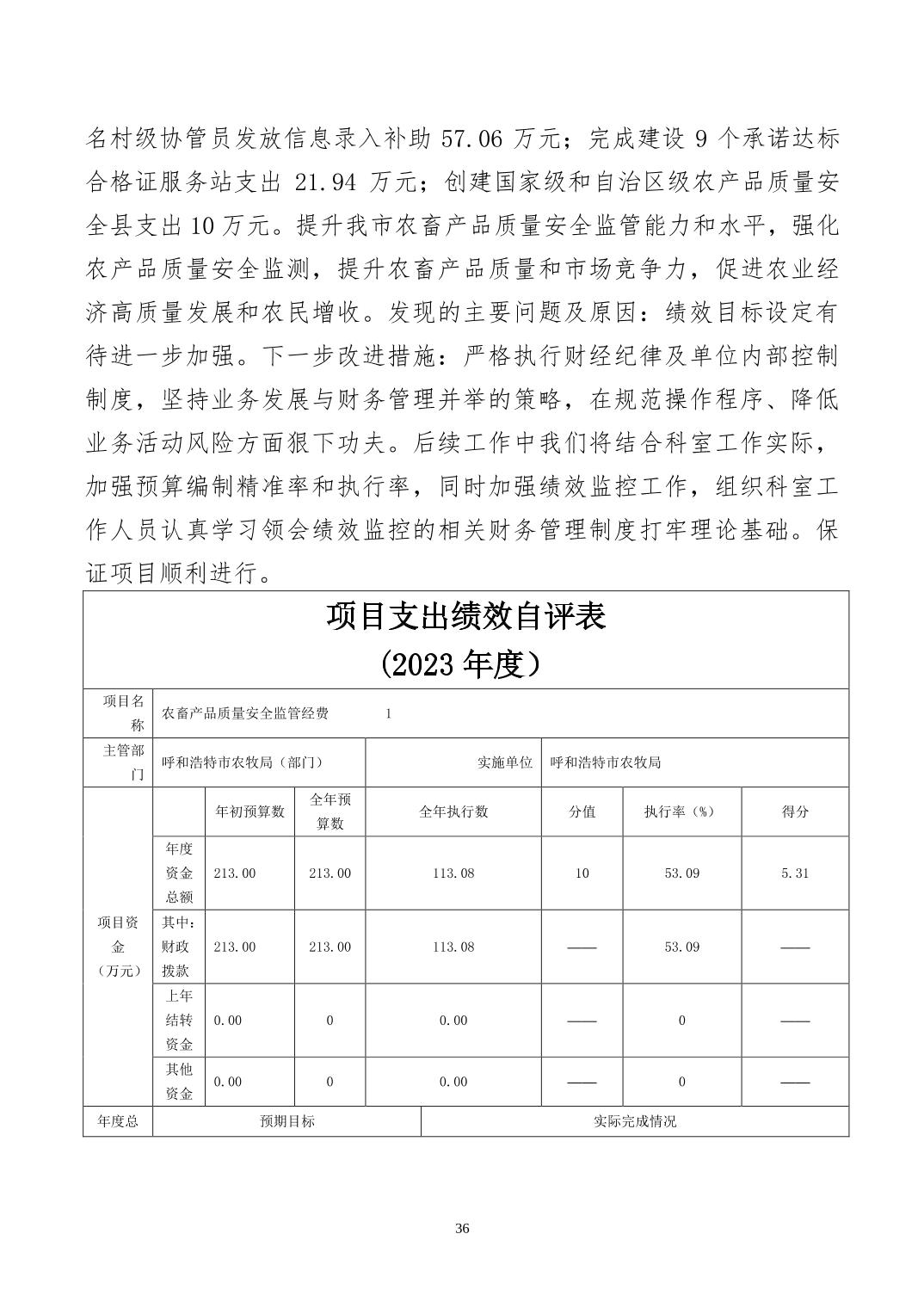 2023年度内蒙古自治区呼和浩特市农牧局(部门)决算 公开