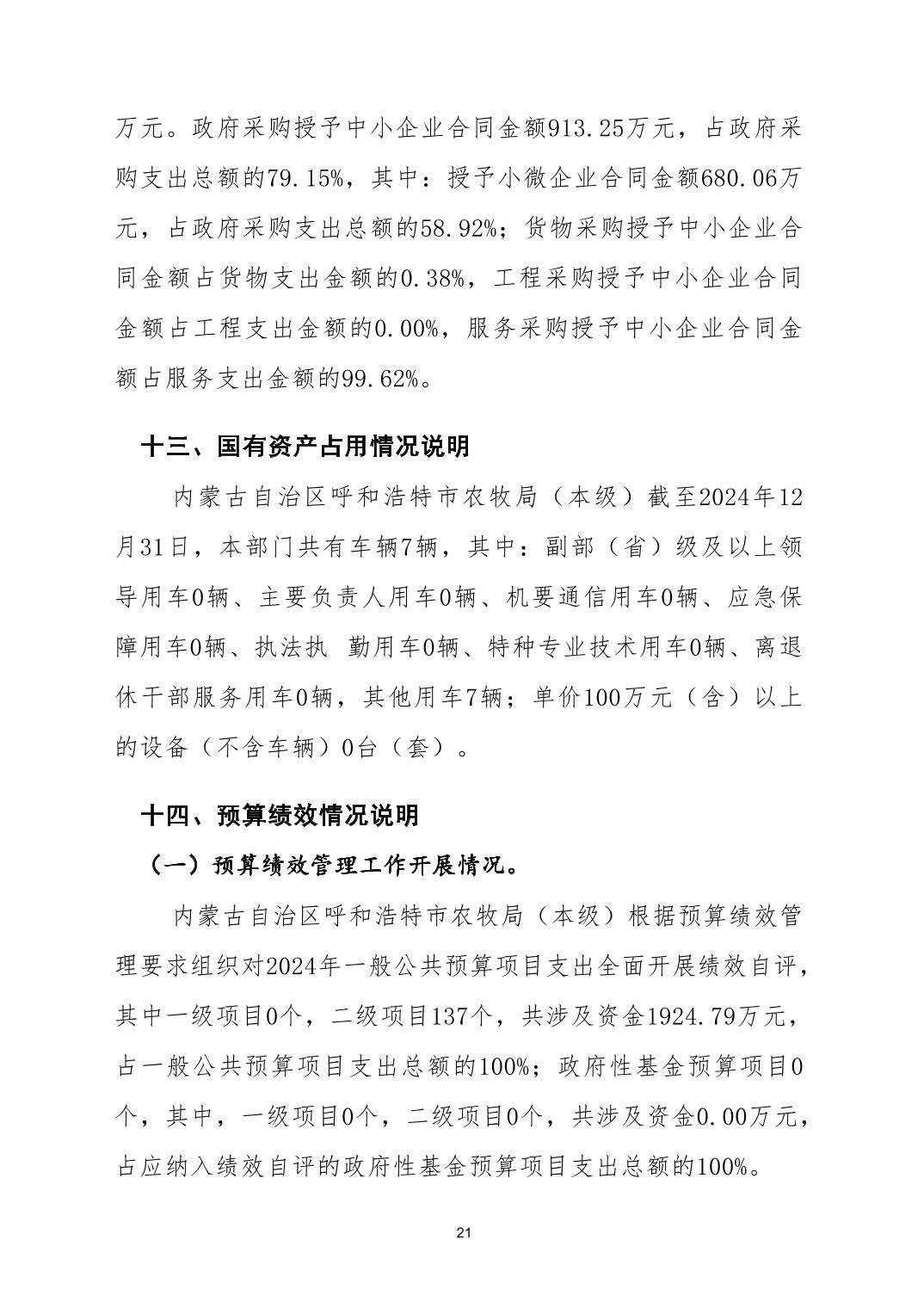 2024年度内蒙古自治区呼和浩特市农牧局(本级)决算公开