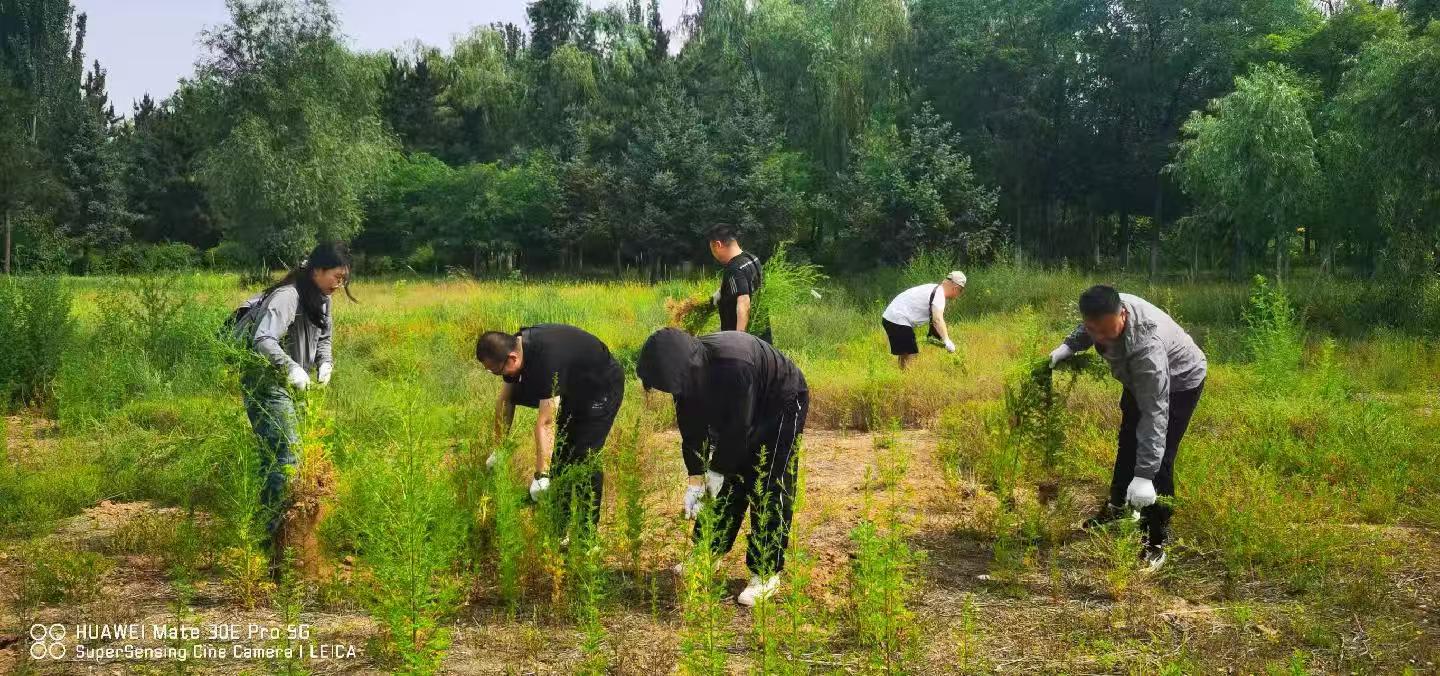 2025年6月28日上午,市农畜产品质量安全中心党员干部前往兴泰东河湾附近,该区域蒿草生长茂密,对过敏体质的居民健康造成一定威胁。大家合理分工、全力以赴,共清除蒿草面积450余平方米,清运蒿草及垃圾约300公斤,清除后环境卫生状况得到显著改善。