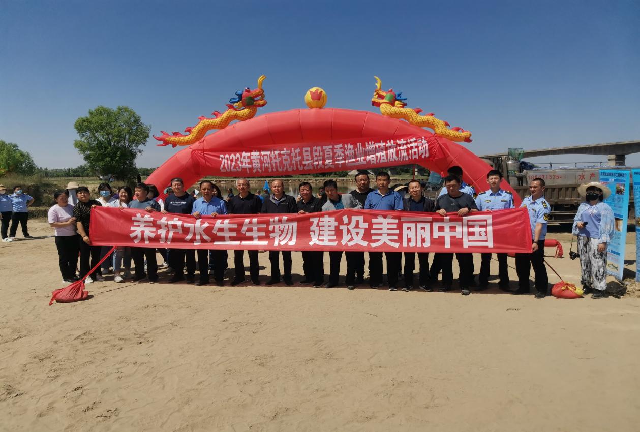 6月6日上午,由托克托县农牧局承办,在黄河段东营子村巨合滩段举行“全国放鱼日”同步增殖放流活动。共向黄河水域投放夏花鱼种共计460万尾(鲢鱼200万尾、鳙鱼200万尾、草鱼60万尾),拉开了全市增殖放流水生生物资源的帷幕。