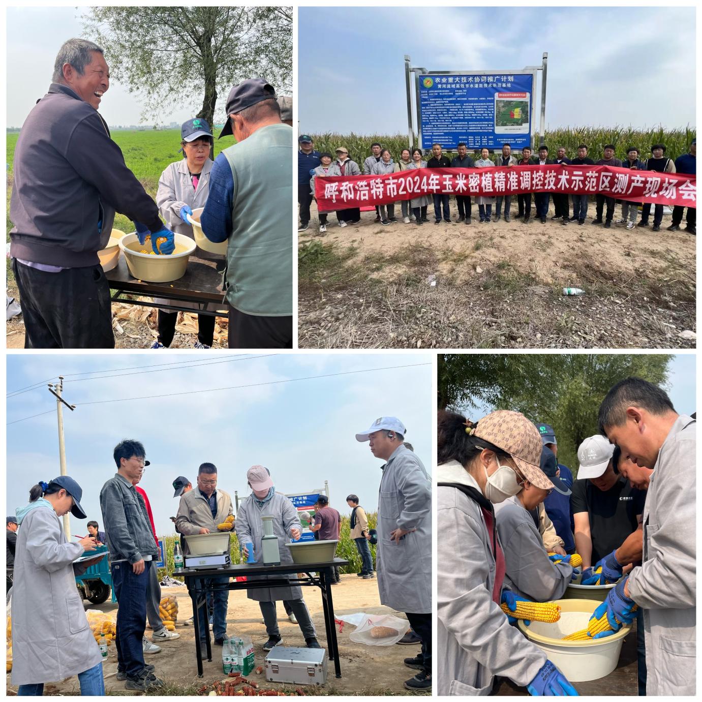 为全方位夯实我市粮食安全根基,持续提升粮油作物单产水平,推动全市玉米单产提升。2024年,土默特左旗整建制推进玉米密植高产示范区20万亩,全市推广种植62万亩,主推玉米密植高产精准调控技术。为准确摸清该项技术增产情况,9月23日至9月26日,呼和浩特市农牧技术推广中心组织内蒙古自治区农科院、内蒙古农业大学、内蒙古自治区农牧厅部分专家对全市范围内玉米密植高产精准调控技术种植区进行现场取样、测产,分别测定了不同品种和不同密度籽粒及生物产量。