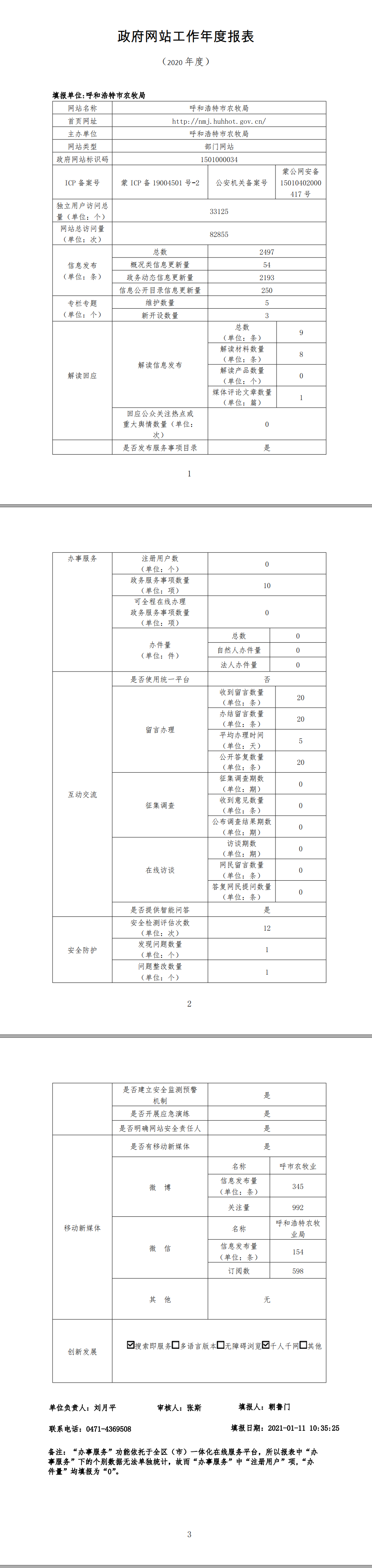 呼和浩特市农牧局2020年政府网站年度工作报表