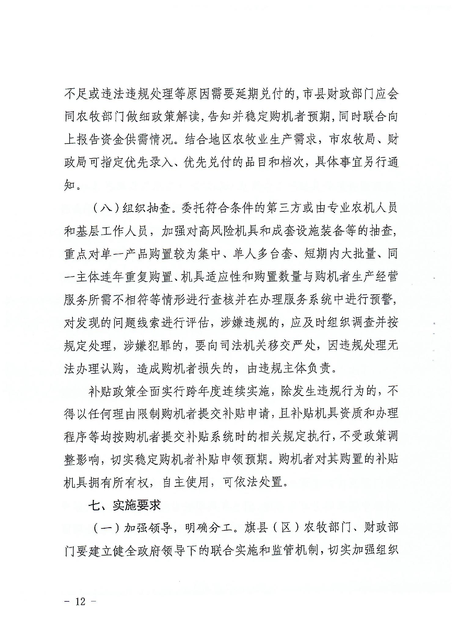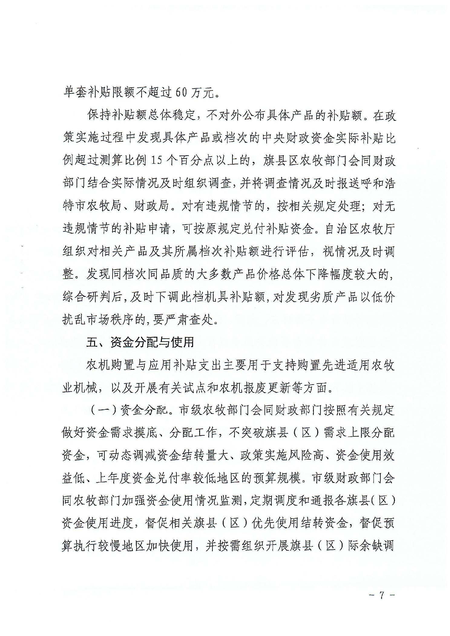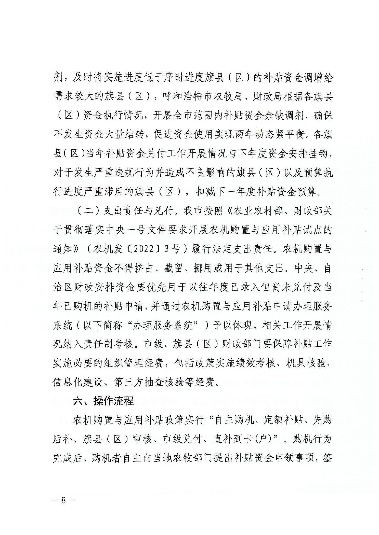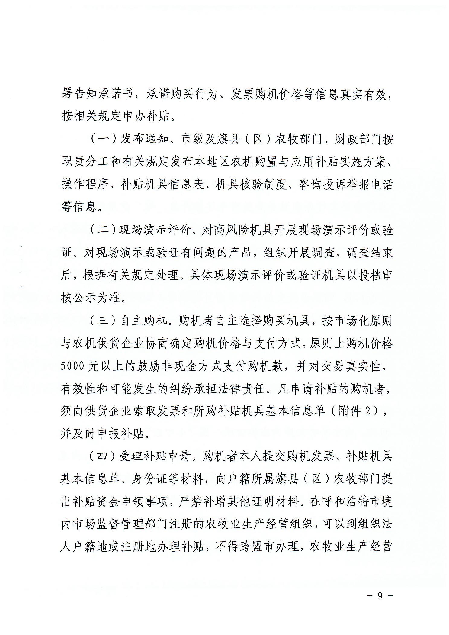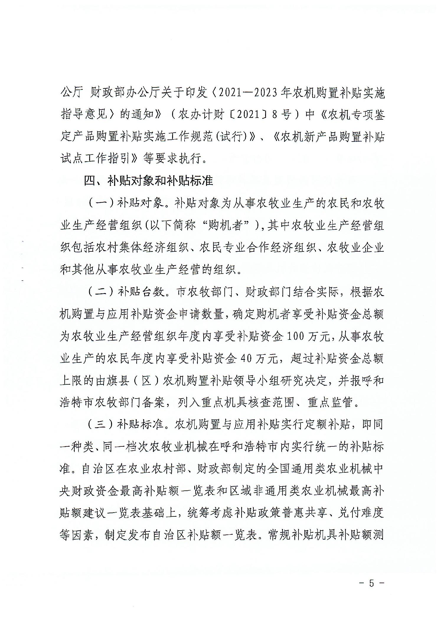 呼和浩特市农牧局 财政局关于印发呼和浩特市2024—2026年农机购置与应用补贴实施方案的通知