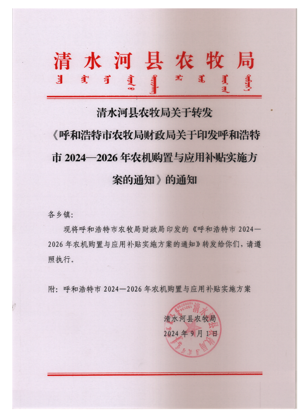 呼和浩特市农牧局 财政局关于印发呼和浩特市2024—2026年农机购置与应用补贴实施方案的通知.pdf